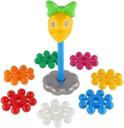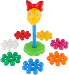 Gli ampi anelli colorati si impugnano bene e si infilano con facilità sull'asta centrale. Il gioco favorisce la precisione dei movimenti e allena la coordinazione occhio–mano fin dai primi passi.