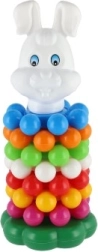 Il giocattolo è realizzato in plastica leggera e resistente con bordi arrotondati ed è disponibile in 3 varianti con diverse forme di anelli e divertenti motivi di animali in cima. La pratica confezione in rete facilita sia il riposizionamento sia il trasporto.