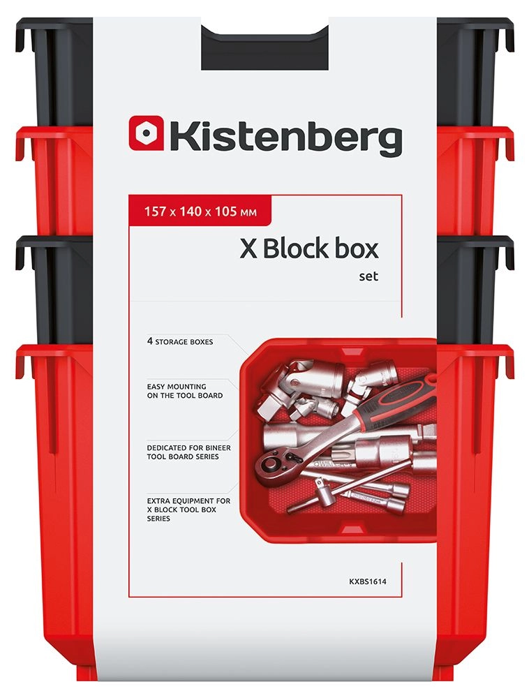 Il set di quattro box modulari X Block Box offre una soluzione intelligente e resistente per la selezione e lo stoccaggio di piccoli componenti. I box hanno parte superiore e fronte aperti per una manipolazione agevole, bordi rinforzati e un bordo sagomato per un impilamento sicuro su scaffali e scaffalature.