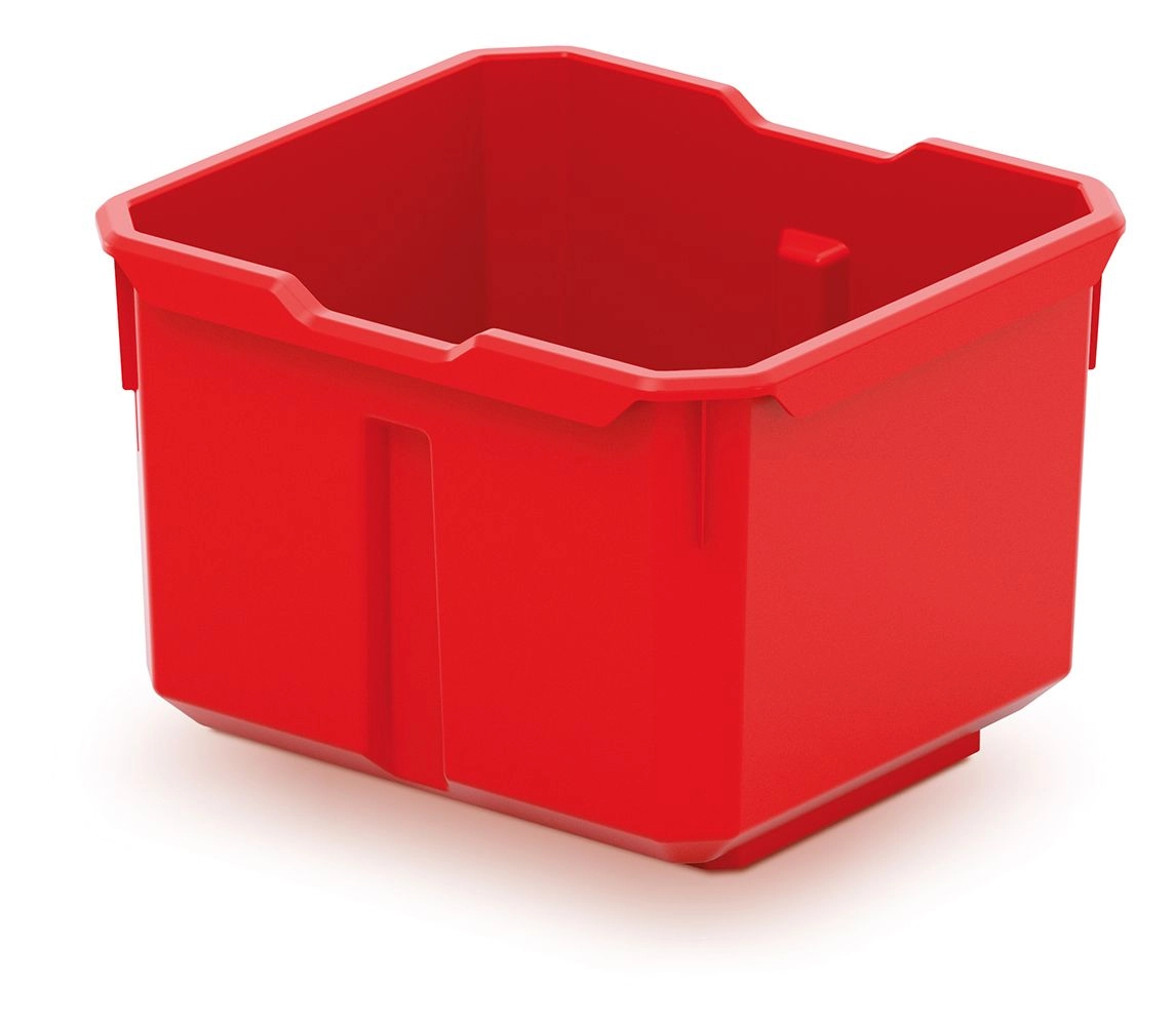 Grazie alle dimensioni compatte di 157 × 140 × 210 mm, sfrutti lo spazio in modo efficiente e mantieni l’ordine nell’ambiente di lavoro. La plastica resistente garantisce una lunga durata anche con uso quotidiano; inoltre la finitura nero‑rossa a contrasto migliora la visibilità del contenuto.
