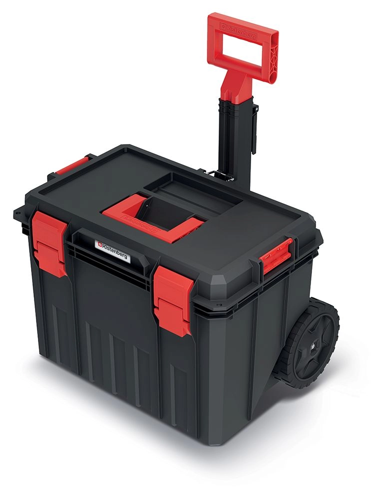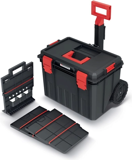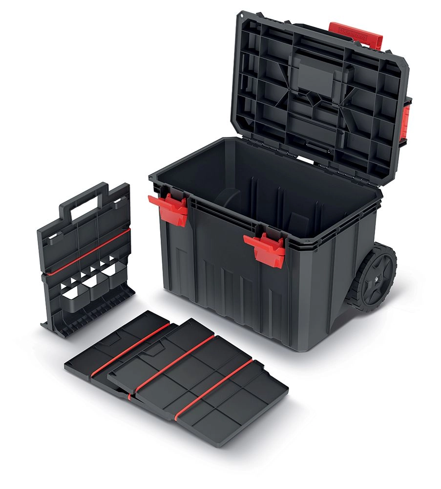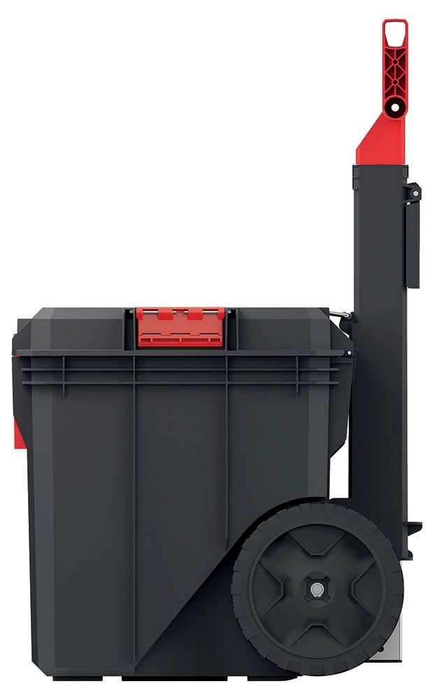 La valigia porta attrezzi con dimensioni 530 × 355 × 390 mm è progettata per l'uso quotidiano in cantiere, in officina e in garage. Le grandi ruote, la maniglia telescopica e la solida maniglia superiore garantiscono manovre comode e sicure, mentre la plastica robusta resiste agli urti e alle condizioni difficili.