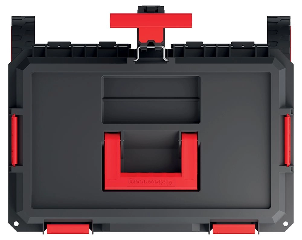 Angoli rinforzati, coperchio solido e chiusure di sicurezza proteggono il contenuto dagli urti e mantengono gli utensili ben chiusi durante il trasporto.