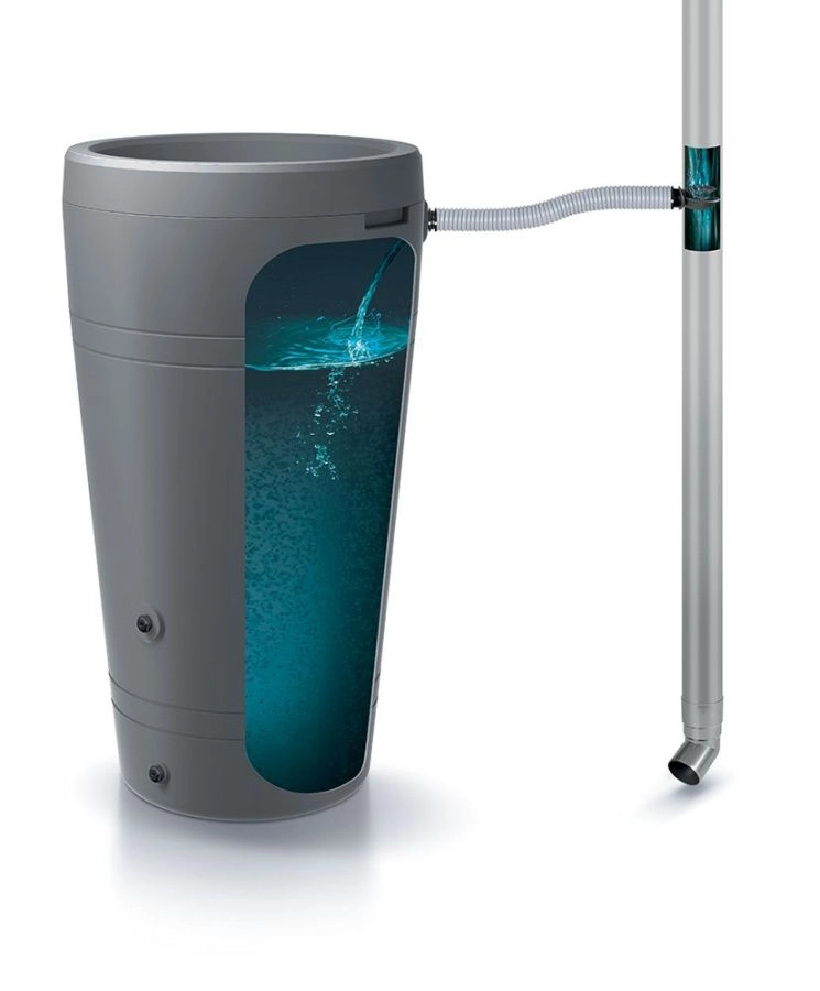 Il tubo ampio e flessibile e il raccoglitore d’acqua garantiscono un flusso continuo anche durante forti piogge. Riduce al minimo tracimazioni e perdite d’acqua.