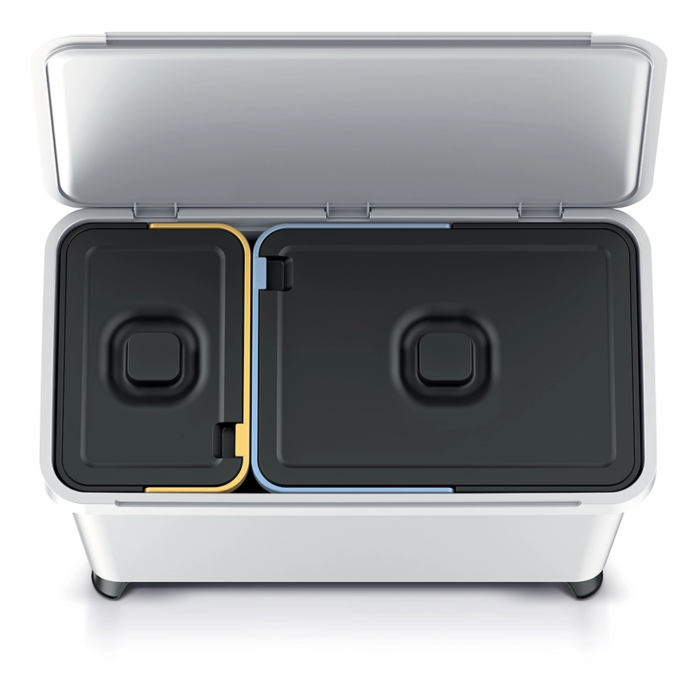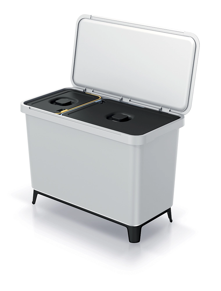 La pratica pattumiera a due scomparti Systema offre una raccolta differenziata efficiente e igienica in un'unica stazione ordinata. Grazie alle capacite0 di 10 l e 23 l separi facilmente plastica, carta, indifferenziato o organico. I dettagli colorati sui coperchi velocizzano l'orientamento per tutta la famiglia, mentre l'apertura manuale e8 silenziosa e affidabile.