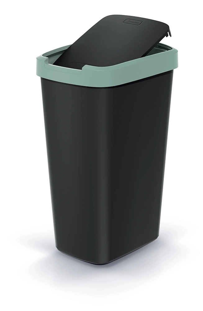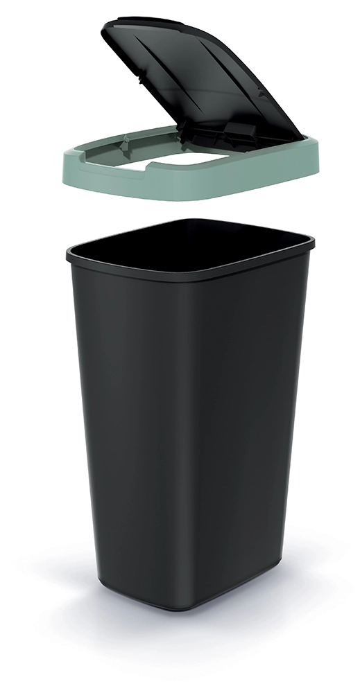 Elegante e salvaspazio, il cestino da 45 litri è la scelta ideale per cucina, ufficio e ambienti più piccoli. Il corpo in plastica resistente di colore nero opaco è completato da un discreto bordo verde chiaro, che dona un look moderno e facilita l’abbinamento con l’arredo.