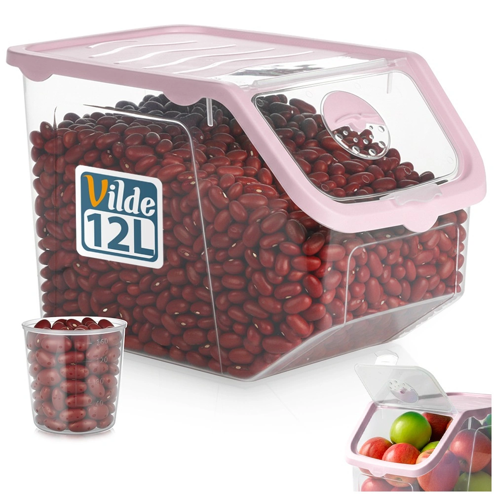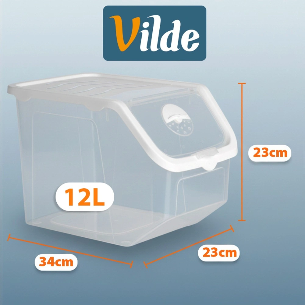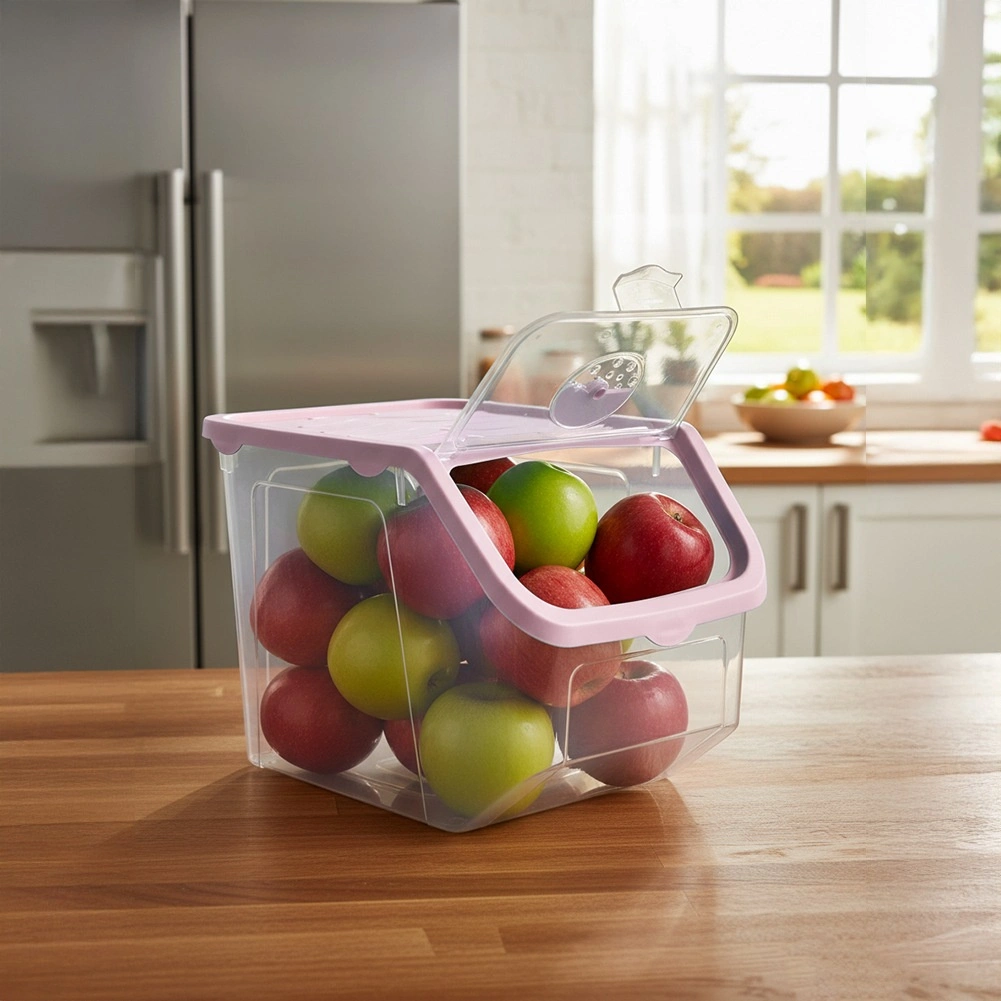 Contenitore pratico e igienico per organizzare la dispensa e il piano cucina. Grazie alle pareti trasparenti hai sempre sotto controllo lo stato delle scorte; la portina frontale ribaltabile permette un dosaggio comodo e il coperchio ermetico protegge da umidità e odori. Ideale per frutta, verdura (cipolle, patate, aglio), cibo per animali, farina e legumi.