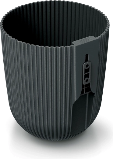 Elegante fioriera da parete Milly Wall con diametro di 14,6 cm in colore antracite, ideale per erbe aromatiche, piante succulente e piante di piccole dimensioni. La plastica leggera e resistente è facile da mantenere, stabile ai raggi UV e adatta anche alle intemperie. Il moderno design zigrinato con scanalature verticali dona un aspetto sofisticato a interni ed esterni e, grazie alla possibilità di appendere alla parete, crea un’originale decorazione verde.