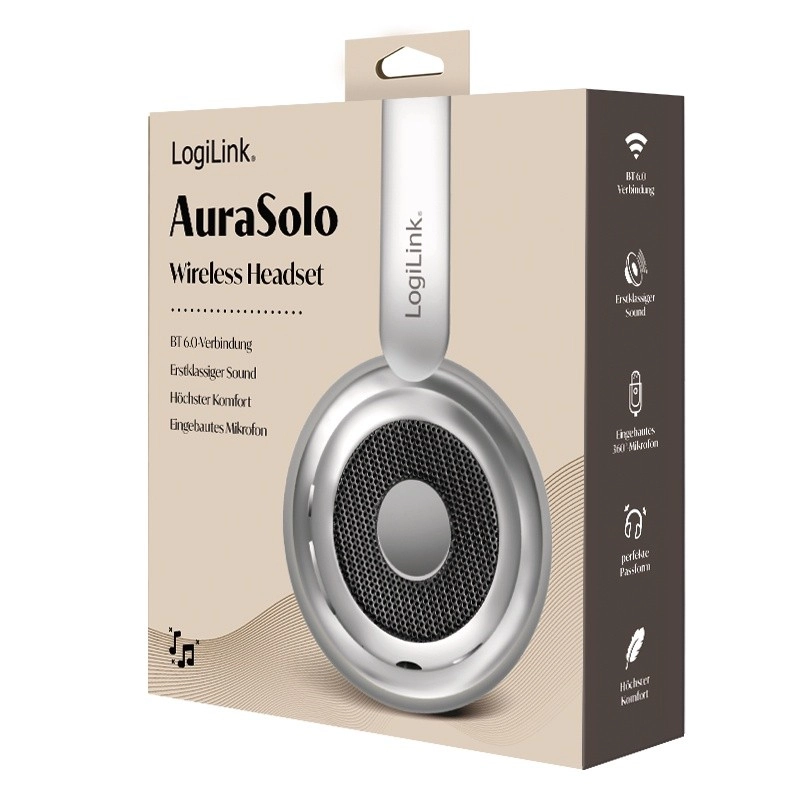 Le cuffie LOGILINK AuraSolo uniscono un’elegante finitura argento a funzioni pratiche per lavoro, viaggio e relax. Grazie al Bluetooth 6.0 ottieni una connessione wireless affidabile e, se necessario, puoi collegare anche il cavo audio da 3,5 mm. La cancellazione attiva del rumore (ANC) ti aiuta a concentrarti su musica o lavoro anche in ambienti rumorosi.