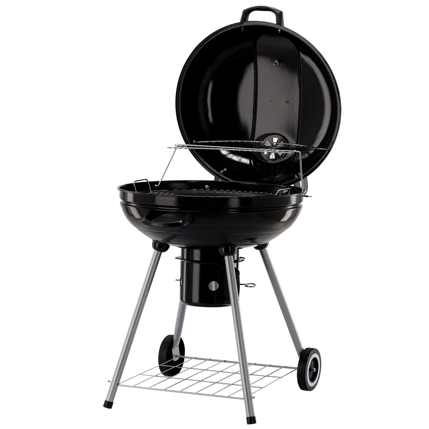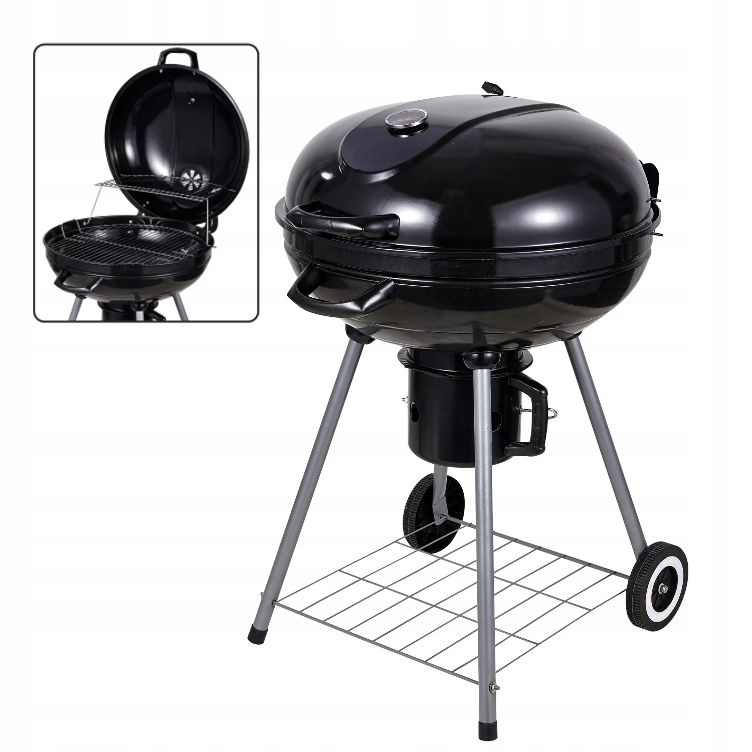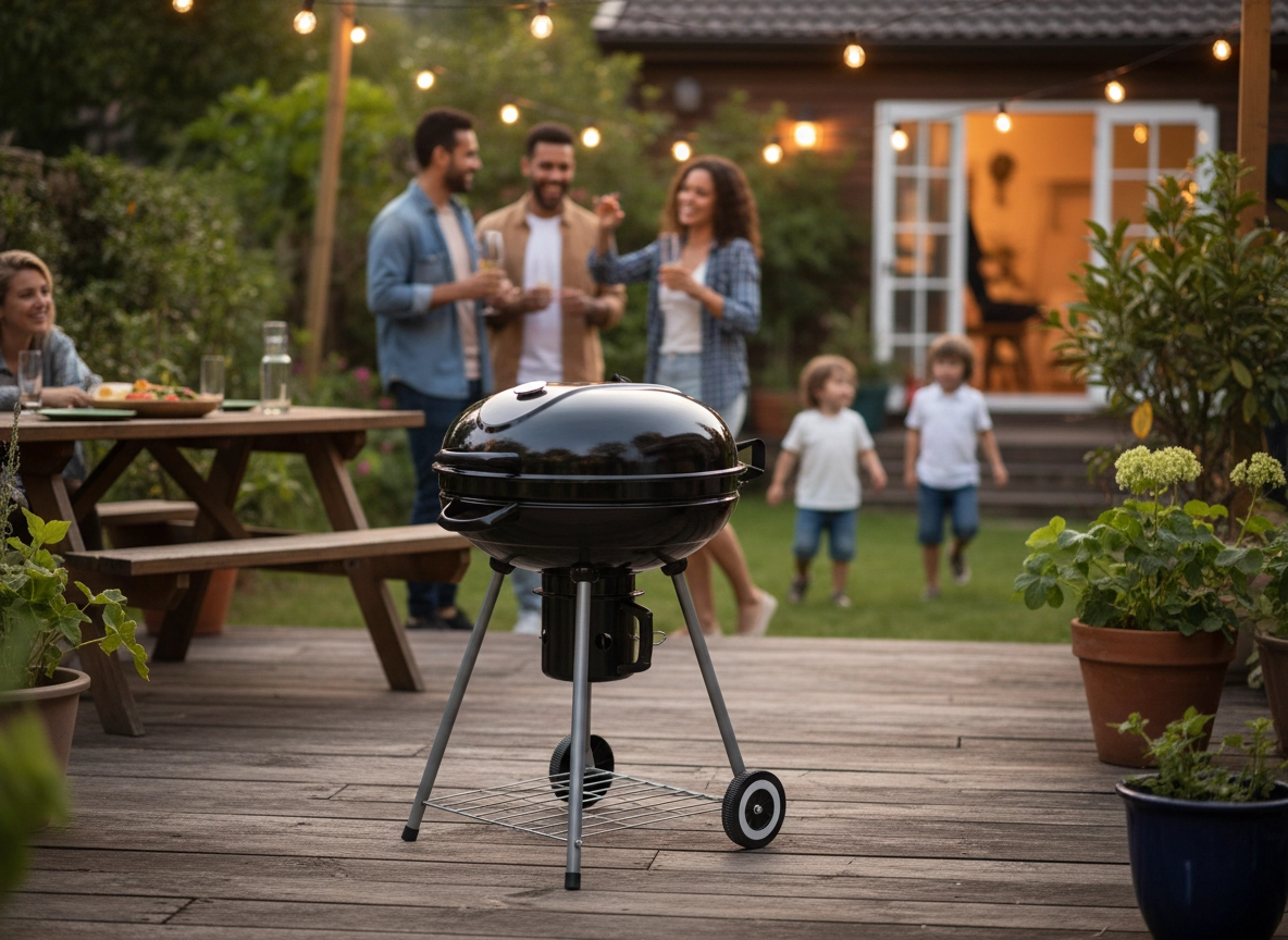 Goditi il gusto autentico della grigliata con il barbecue rotondo a carbone, dotato di braciere smaltato, termometro integrato nel coperchio, ampia griglia cromata e pratico raccoglicenere. Grazie alle ruote per un facile spostamento e alla struttura stabile, è la scelta perfetta per giardino, terrazza e picnic.