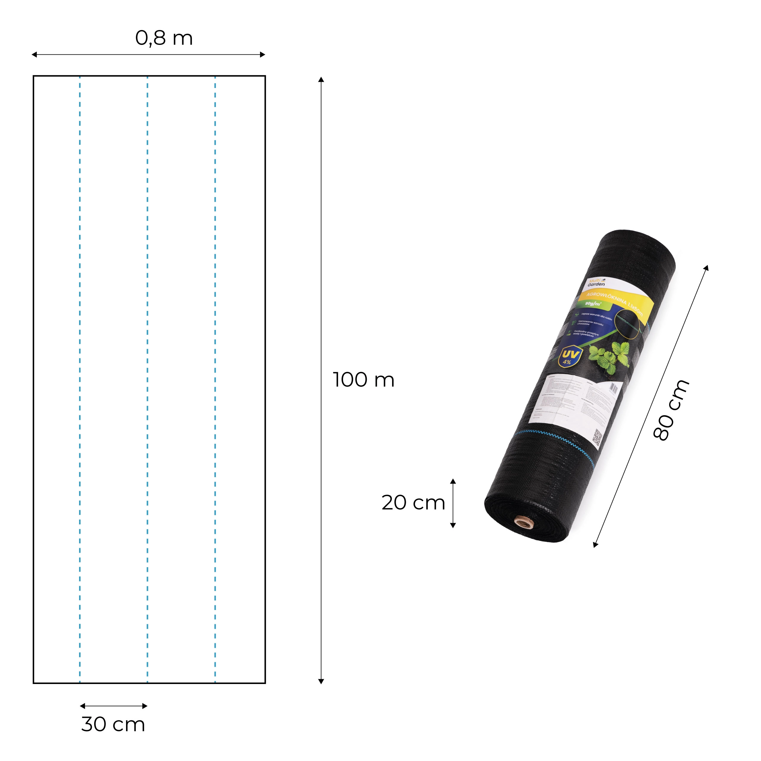Le linee di riferimento blu ogni 31 cm aiutano a pianificare l’impianto in linea retta e a mantenere spaziature uniformi. Il set comprende 50 picchetti di montaggio (15 cm), che garantiscono un ancoraggio solido del tessuto anche in caso di vento. Il telo può essere lasciato a vista oppure coperto con corteccia, ghiaia o ciottoli per una finitura estetica e a bassa manutenzione.