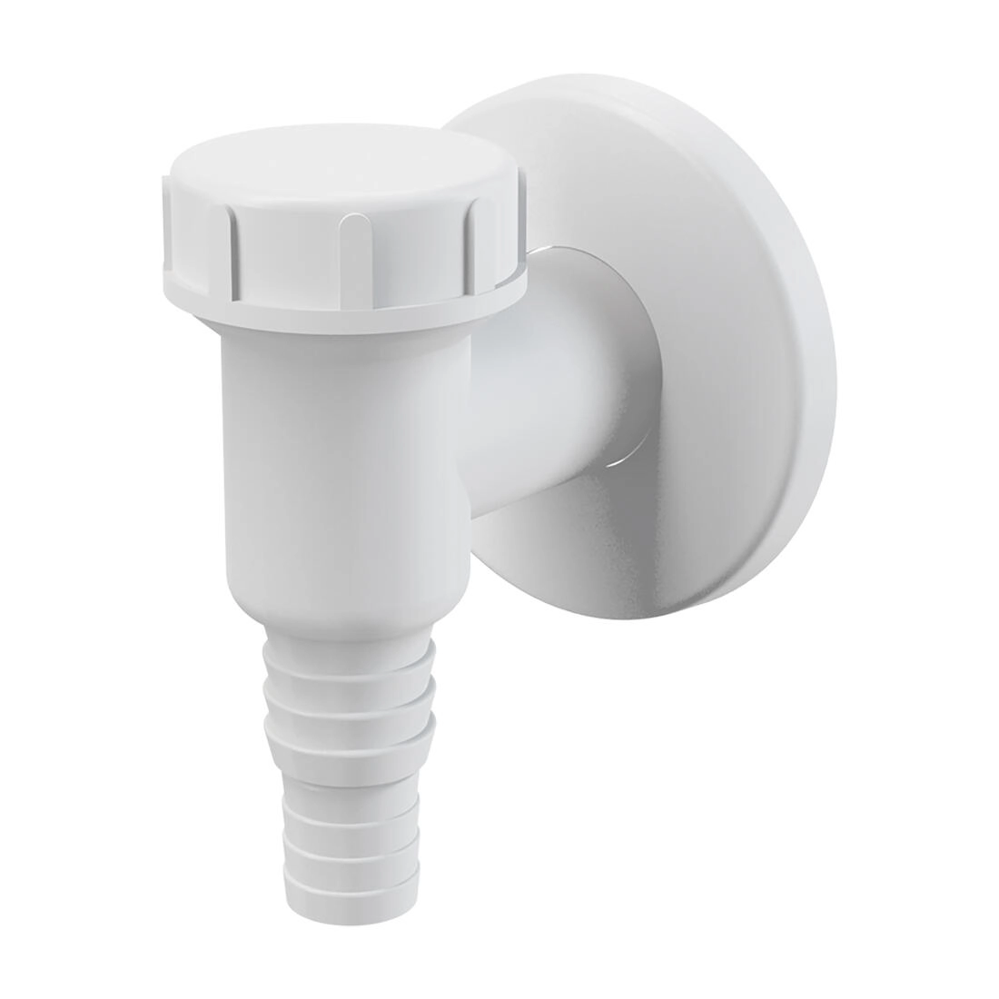 Affidabile sifone per lavatrice da esterno in resistente materiale ABS di colore bianco, ideale per il collegamento di lavatrice o lavastoviglie. Grazie alla valvola a secco impedisce efficacemente la diffusione degli odori dalla rete fognaria, garantendo un ambiente pulito e igienico.