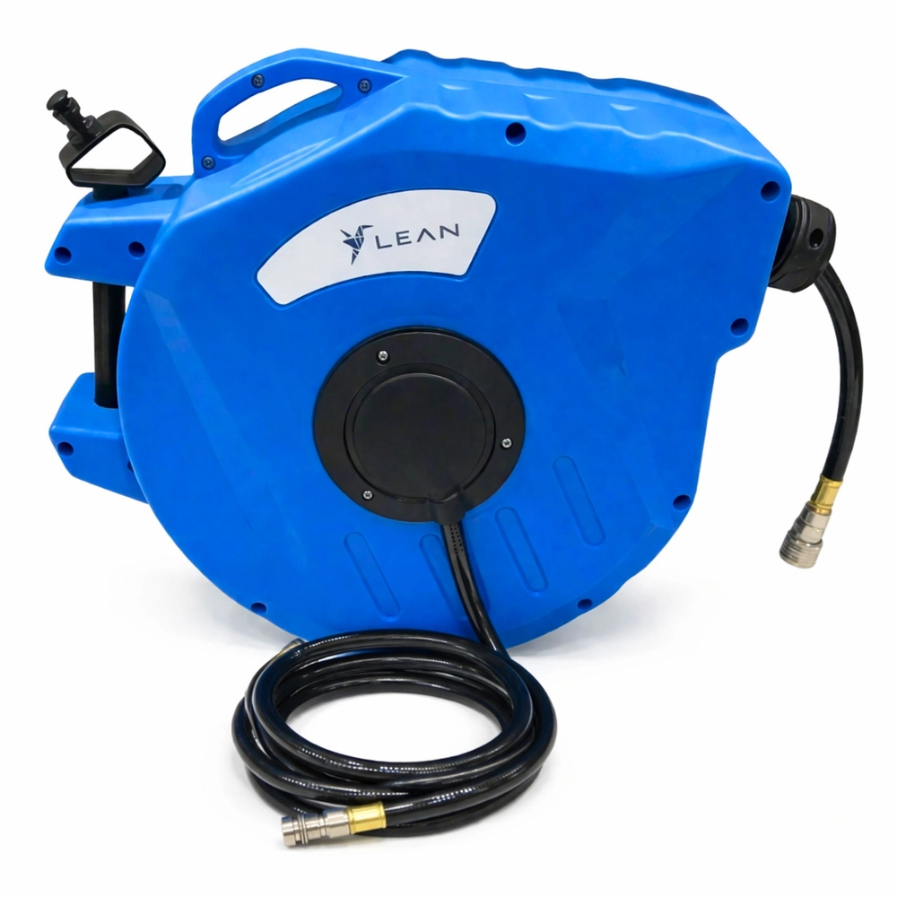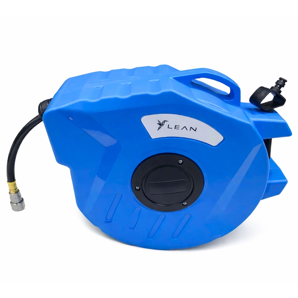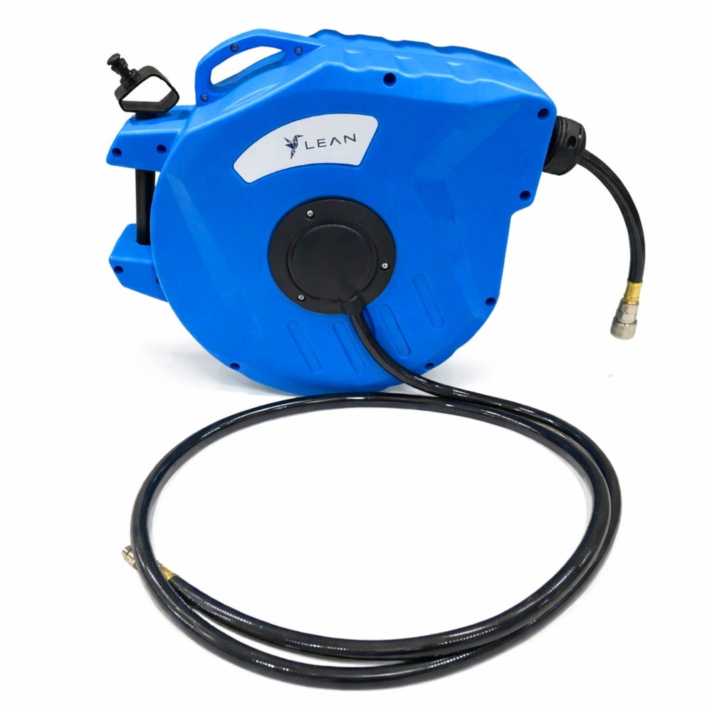 Mantenete l'area di lavoro in ordine e risparmiate tempo con l'avvolgitore automatico. La robusta custodia in plastica protegge il meccanismo, il sistema di guida assicura uno svolgimento e un avvolgimento fluidi e il supporto girevole facilita il lavoro in diverse direzioni. Il tubo in PVC flessibile è adatto a compressori e utensili pneumatici.