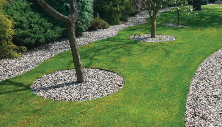 - Separazione del prato da ghiaia, pacciame e aiuole fiorite