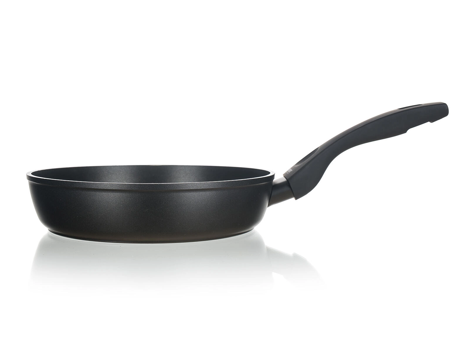 Padella universale GRAZIA dal diametro di 24 cm per la cucina quotidiana. Offre un rivestimento antiaderente a 3 strati ILAG PREMIUM, altamente resistente, una distribuzione uniforme del calore grazie all'alluminio forgiato e un fondo a induzione per l'uso su tutti i tipi di piani cottura. Facile da mantenere, è perfetta per friggere, saltare e preparare piatti veloci.