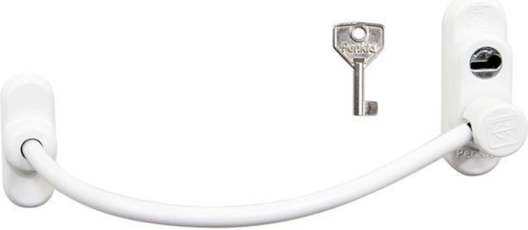 La pratica serratura con cavo aumenta la sicurezza in ambienti domestici e commerciali. Permette un’aerazione sicura limitando l’apertura della finestra a circa 10 cm, riducendo al minimo il rischio di caduta dei bambini, l’accesso dall’esterno o l’apertura involontaria da parte di animali. Il cavo robusto con diametro di 5 mm e la forza di ritenuta di 5.000 N offrono un’elevata resistenza contro le aperture forzate.