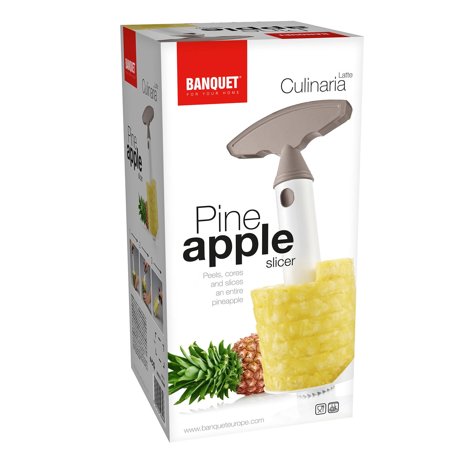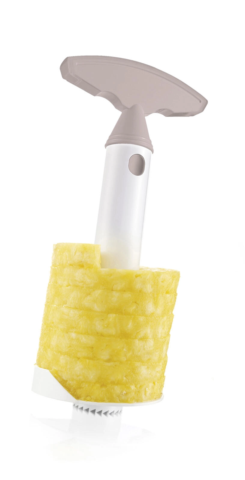 Scopri un modo rapido e pulito per gustare l’ananas fresco senza fatica. L’affettatore e scavino Culinaria Latte penetra facilmente nella polpa, rimuove il torsolo duro e con pochi giri crea eleganti fette a spirale, ideali per dessert, colazioni e cocktail.