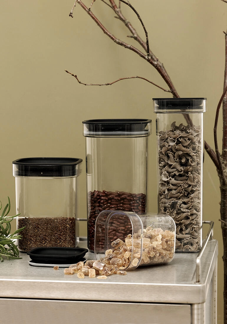 Ideale per farina, zucchero, pasta, riso, legumi e altri alimenti sfusi. Grazie al coperchio impilabile è possibile combinare più contenitori e sfruttare al meglio lo spazio in dispensa. I materiali resistenti NAS / silicone / polipropilene garantiscono lunga durata e facile manutenzione.