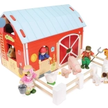 Il grande portone si apre e si chiude facilmente, le finestre consentono di guardare all’interno. I dettagli illustrati, dentro e fuori, immergono i bambini nel mondo della fattoria.