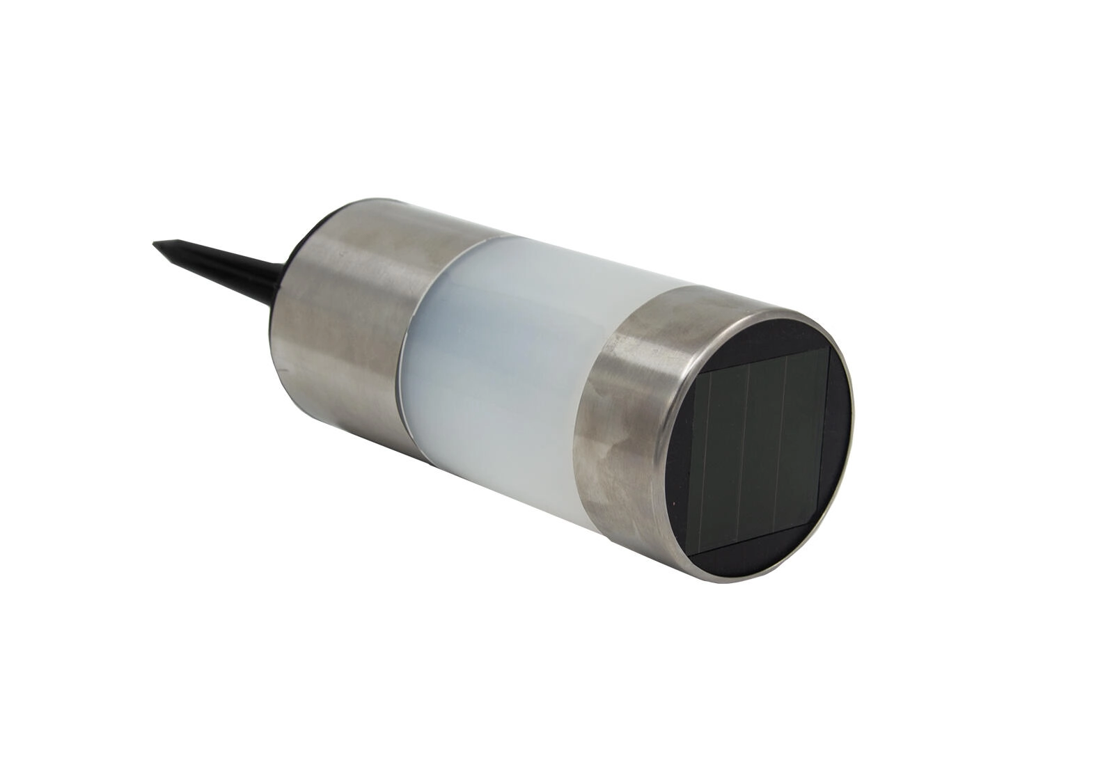 Elegante lampada solare da giardino con diametro di 6 cm e altezza di 23 cm che offre la sera una delicata luce ambientale senza cavi. Grazie al pannello solare integrato e alla batteria si accende automaticamente al calare della notte, è dotata di 1 LED, grado di protezione IP44 e interruttore ON/OFF. La struttura in acciaio inox resistente e il picchetto in plastica assicurano un’installazione semplice e una lunga durata.