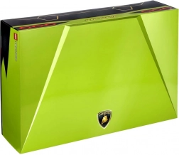 Modello in scala 1:8 con colore verde lime brillante e cerchioni dorati. Dimensioni circa 13 cm in altezza, 60 cm in lunghezza e 25 cm in larghezza.