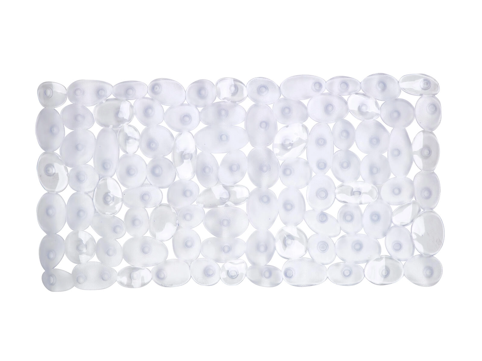 Pratico tappetino antiscivolo con dimensioni 70 × 36 cm che offre un appoggio stabile sia in vasca che nel box doccia. Le fitte ventose sul lato inferiore garantiscono un’aderenza affidabile e riducono al minimo il rischio di scivolare su superfici bagnate. La finitura trasparente è discreta e si abbina a qualsiasi arredo bagno.