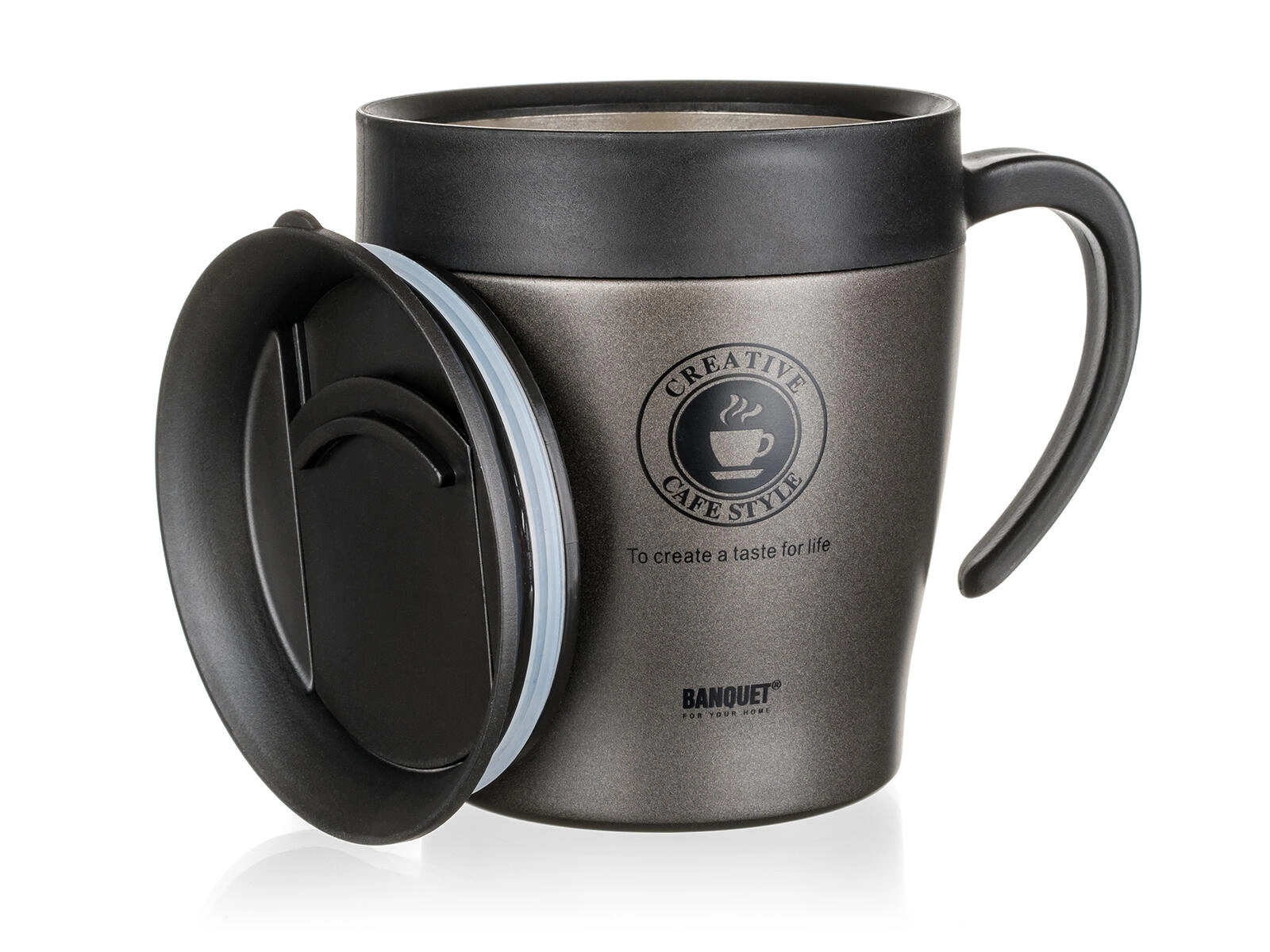 Il coperchio con anello di tenuta in silicone riduce le fuoriuscite e protegge la bevanda mentre si cammina o si guida. Per il trasporto si consiglia la posizione verticale.