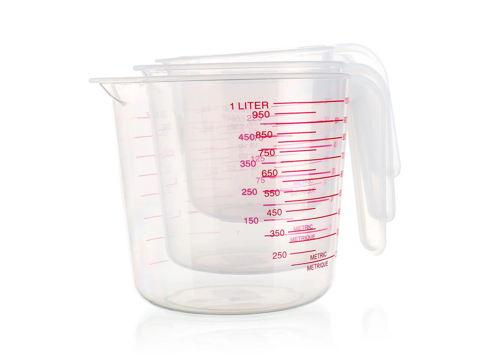 I misurini si inseriscono uno nell’altro per una conservazione compatta. I beccucci e i manici ergonomici garantiscono un versamento pulito e sicuro.