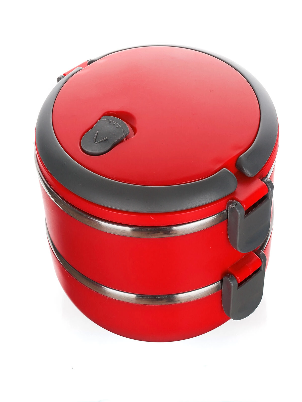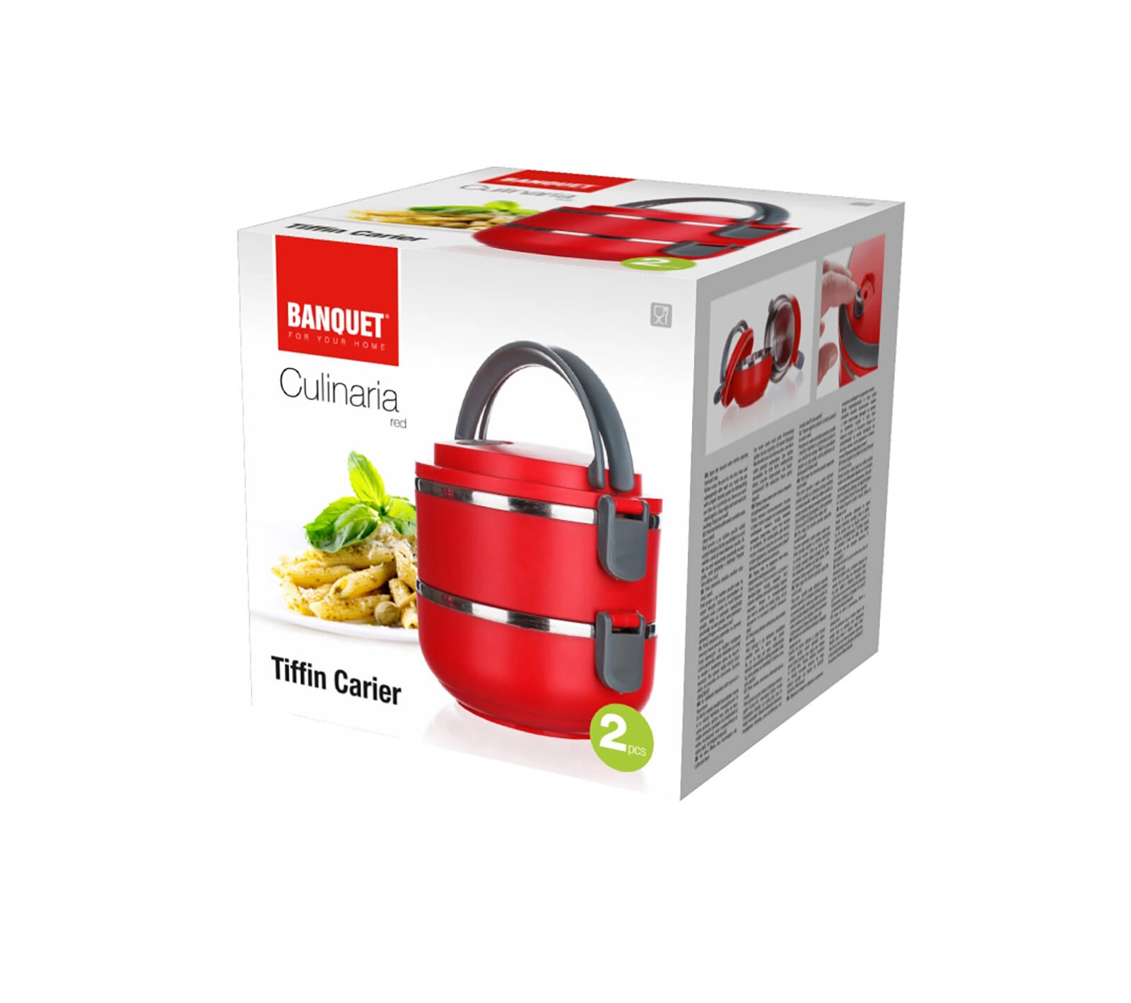 Il portavivande CULINARIA Red a due livelli, in moderno colore rosso, combina polipropilene resistente con inserto in acciaio inox 201 (spessore 0,30 mm). Ogni livello da 0,55 l mantiene le porzioni separate e, grazie al coperchio ermetico con valvola di sfiato, riduce al minimo la dispersione di odori e calore.