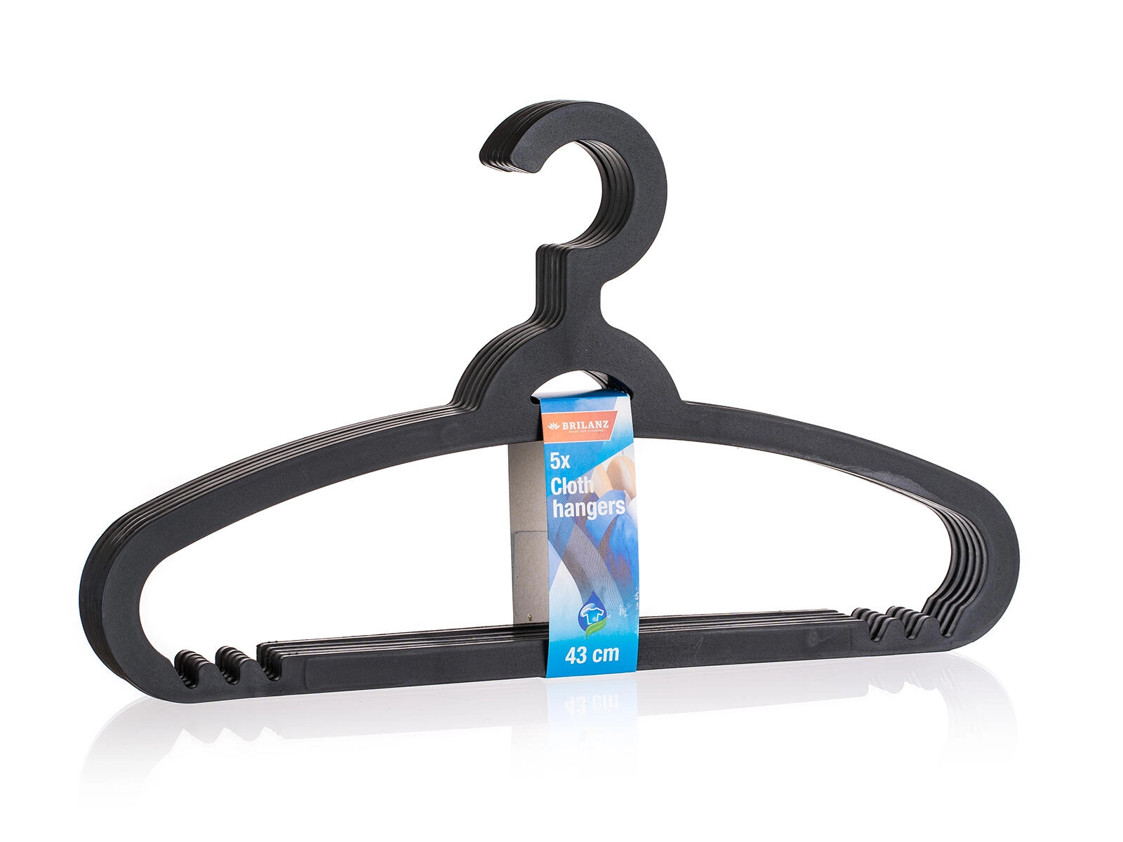 Questo pratico set di 5 grucce nere è ideale per l’uso quotidiano in qualsiasi guardaroba. Dalle T-shirt e camicie fino ad abiti e pantaloni: la forma universale con intagli antiscivolo aiuta a mantenere i capi in posizione e li protegge dallo scivolamento.