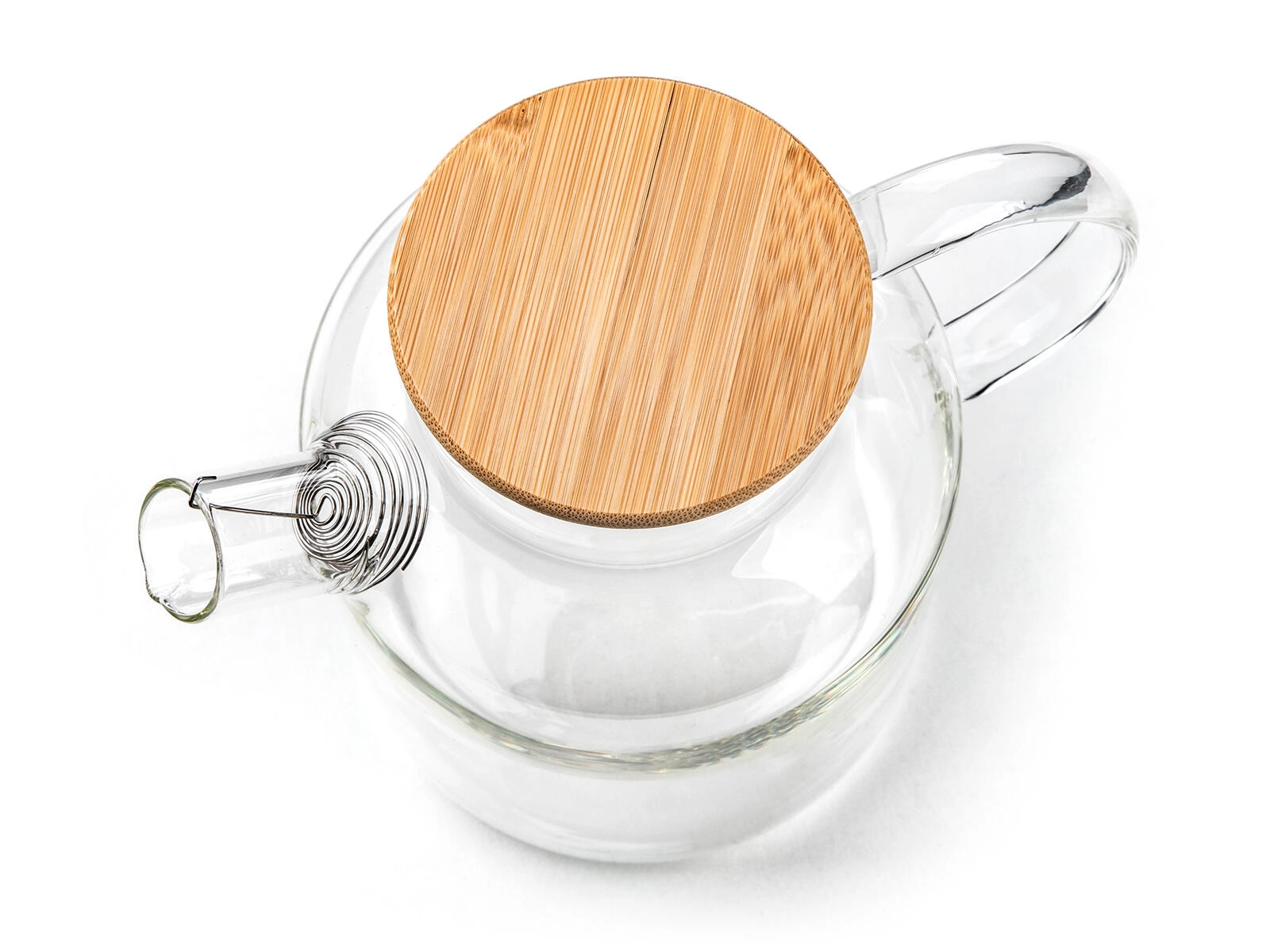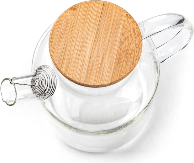 Il pratico filtro a spirale nel beccuccio trattiene erbe, spezie e pezzi di frutta più grandi. Il coperchio in bambù con rivestimento in acciaio inox e guarnizione in silicone aiuta a mantenere la fragranza fresca della bevanda e impedisce la penetrazione di umidità e odori. Il recipiente in vetro è adatto alla lavastoviglie per una manutenzione facile.