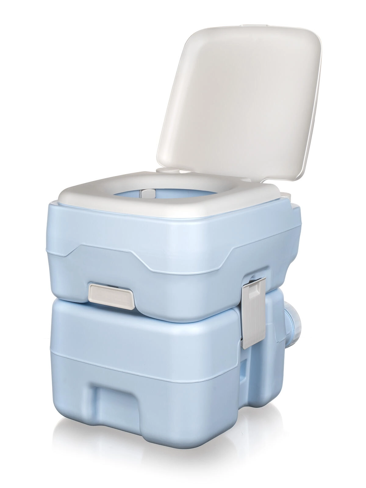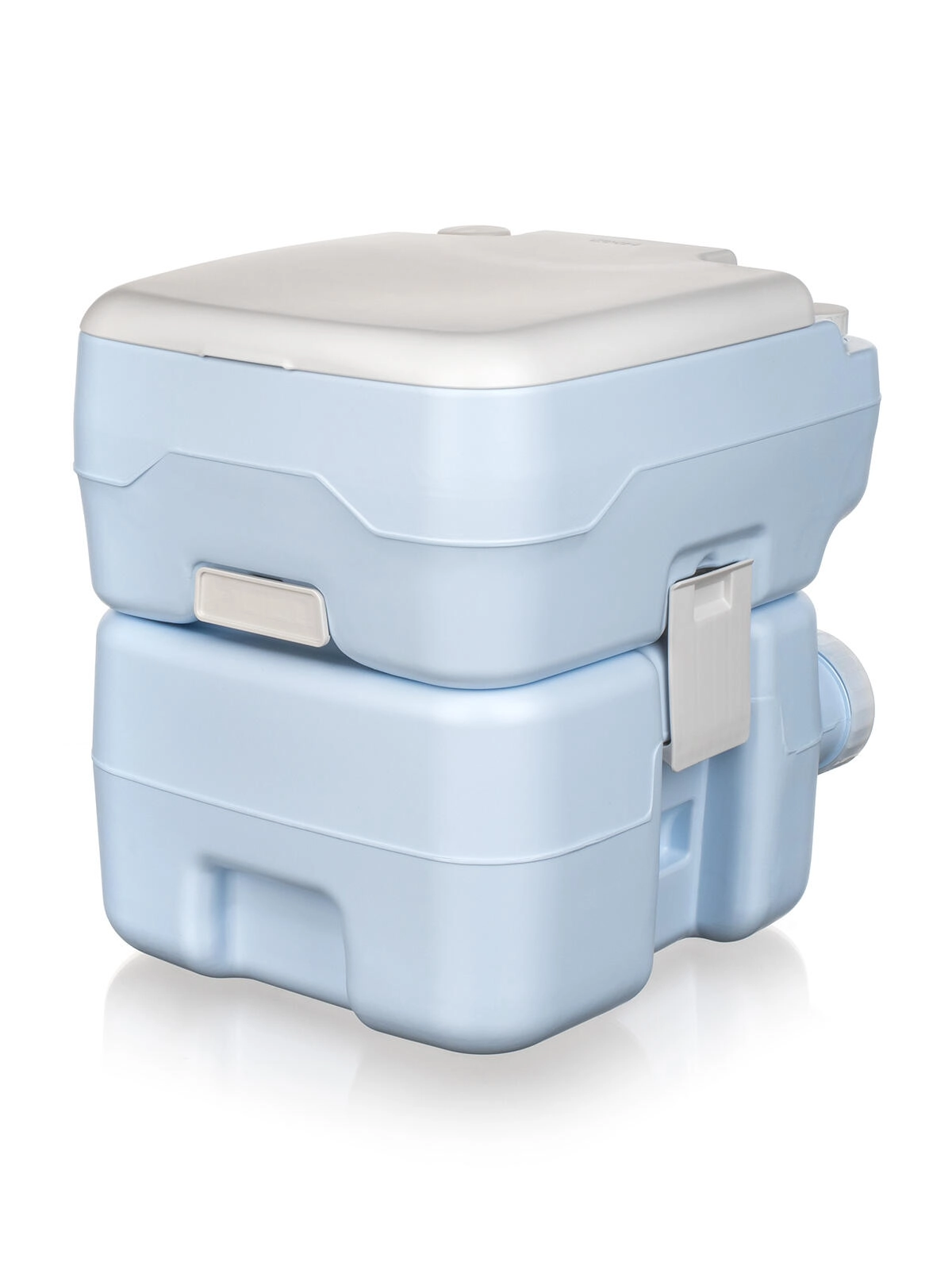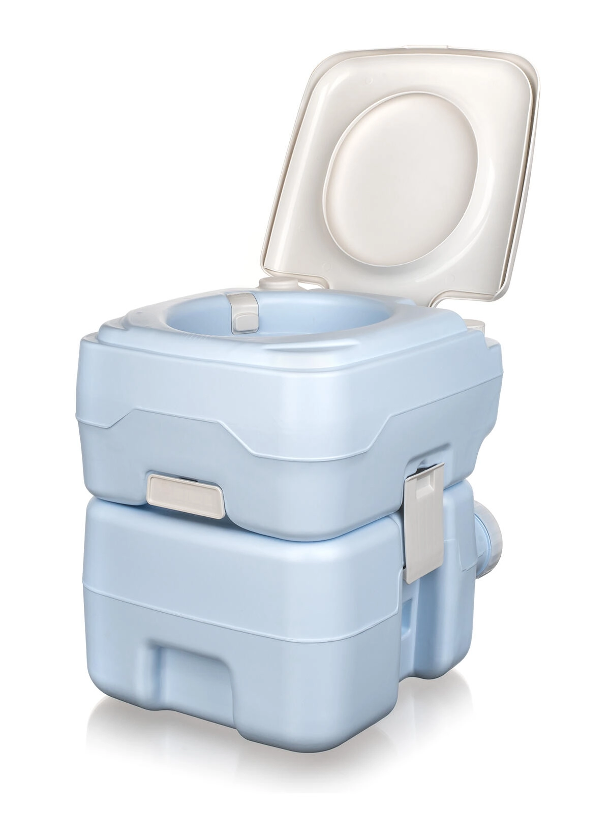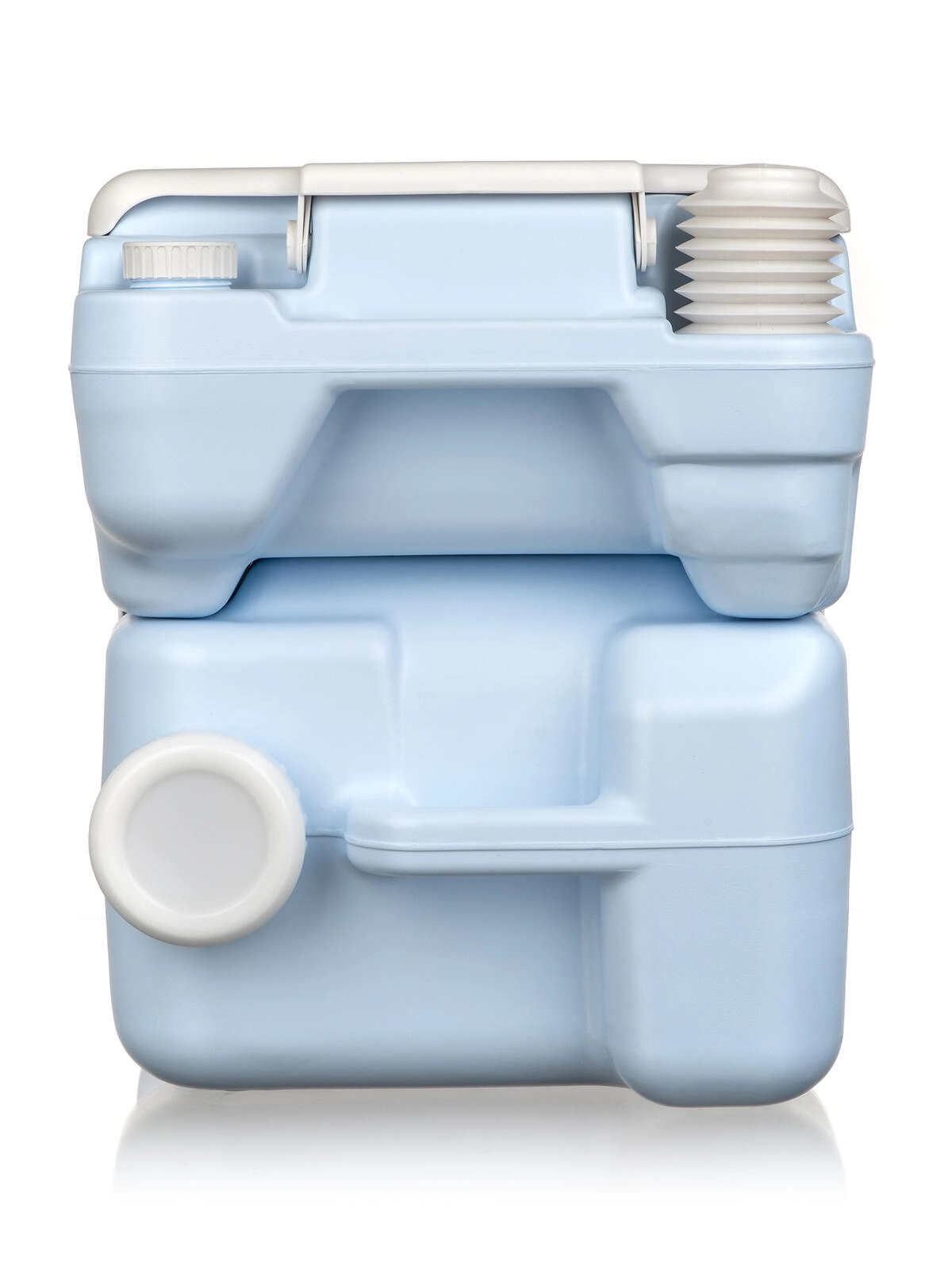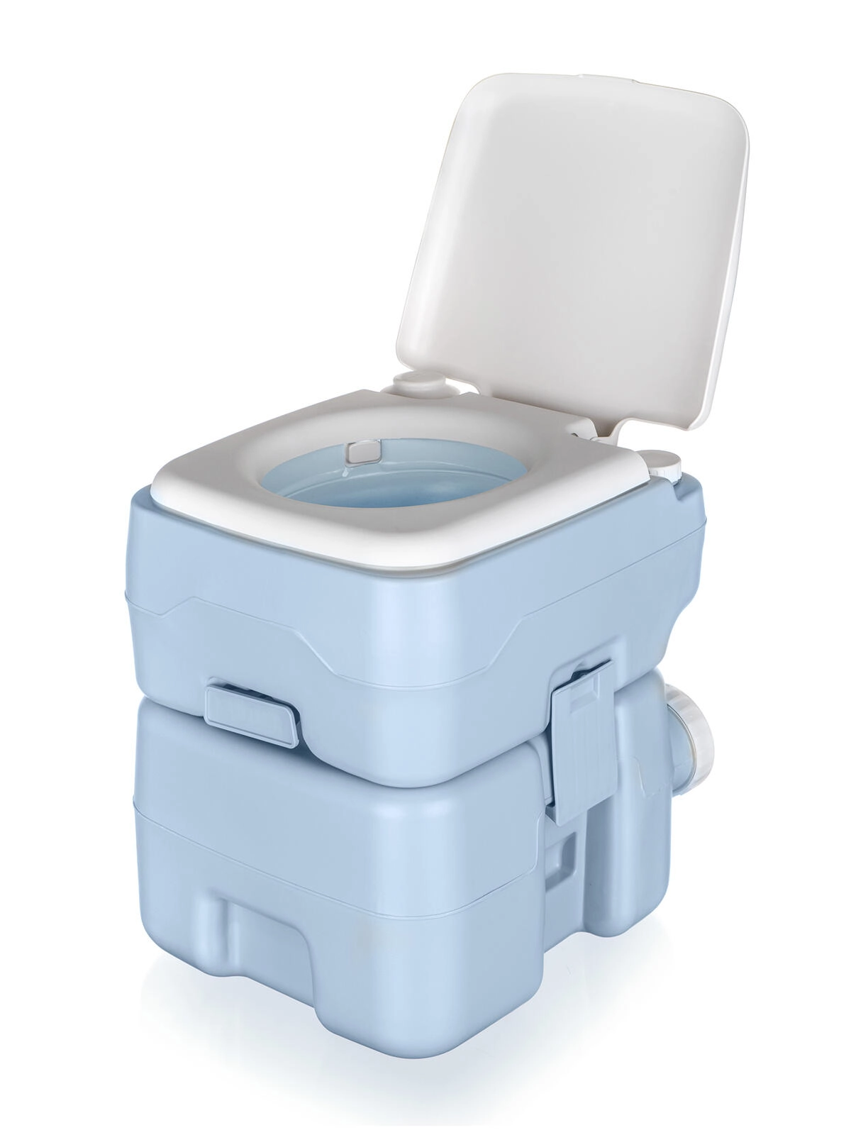 Incluso anche un imbuto di riempimento per facilitare l’aggiunta dei liquidi chimici e dell’acqua pulita. Grazie alle dimensioni compatte e alle clip di bloccaggio tra i serbatoi, la toilette si trasporta facilmente e si sposta in sicurezza.