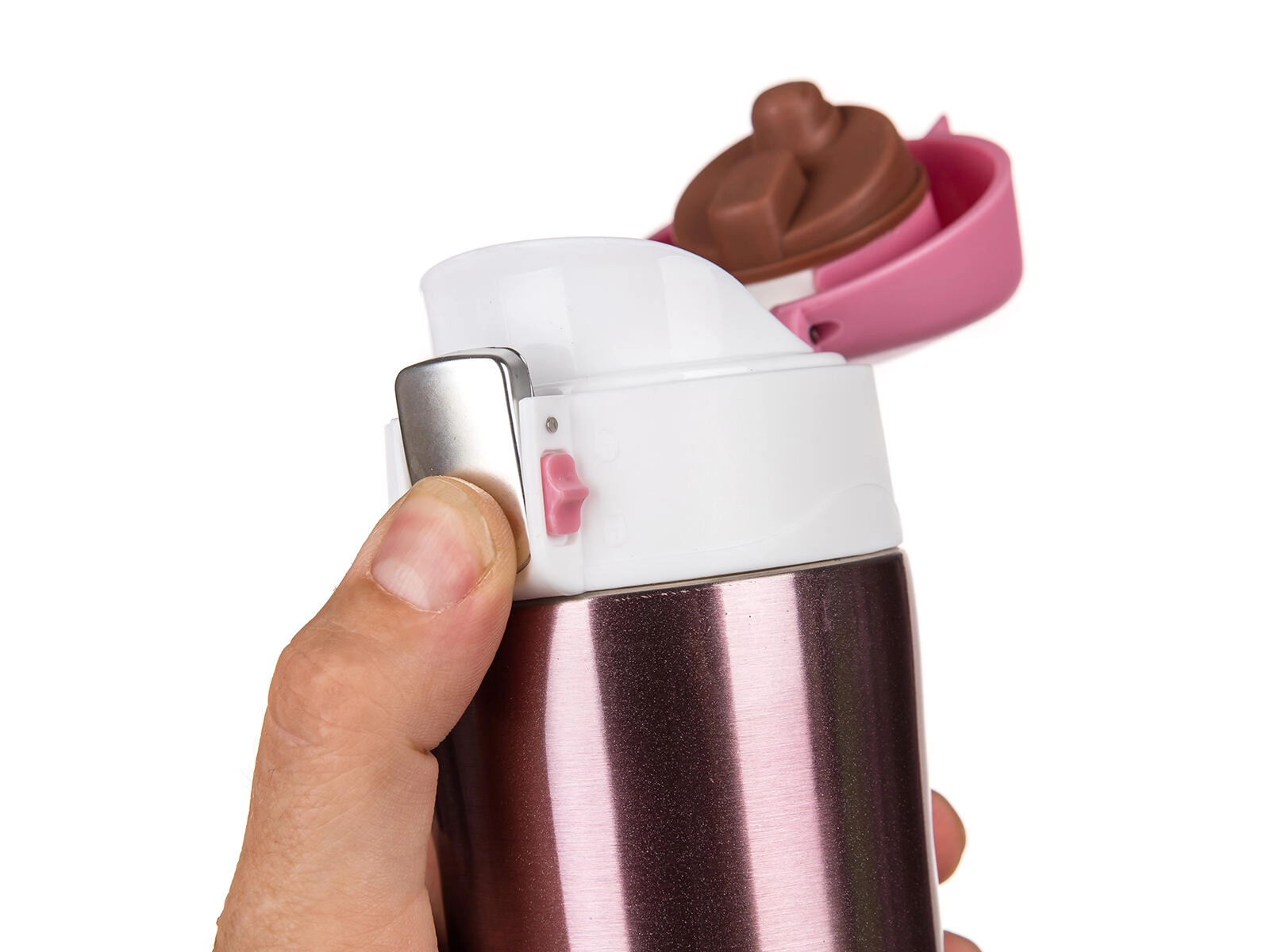 Il coperchio flip-top con blocco di sicurezza si apre con una sola pressione, così puoi bere comodamente con una mano – ideale in auto, in ufficio e durante le passeggiate. La guarnizione intelligente e la sicura riducono al minimo il rischio di perdite in borsa o nello zaino.
