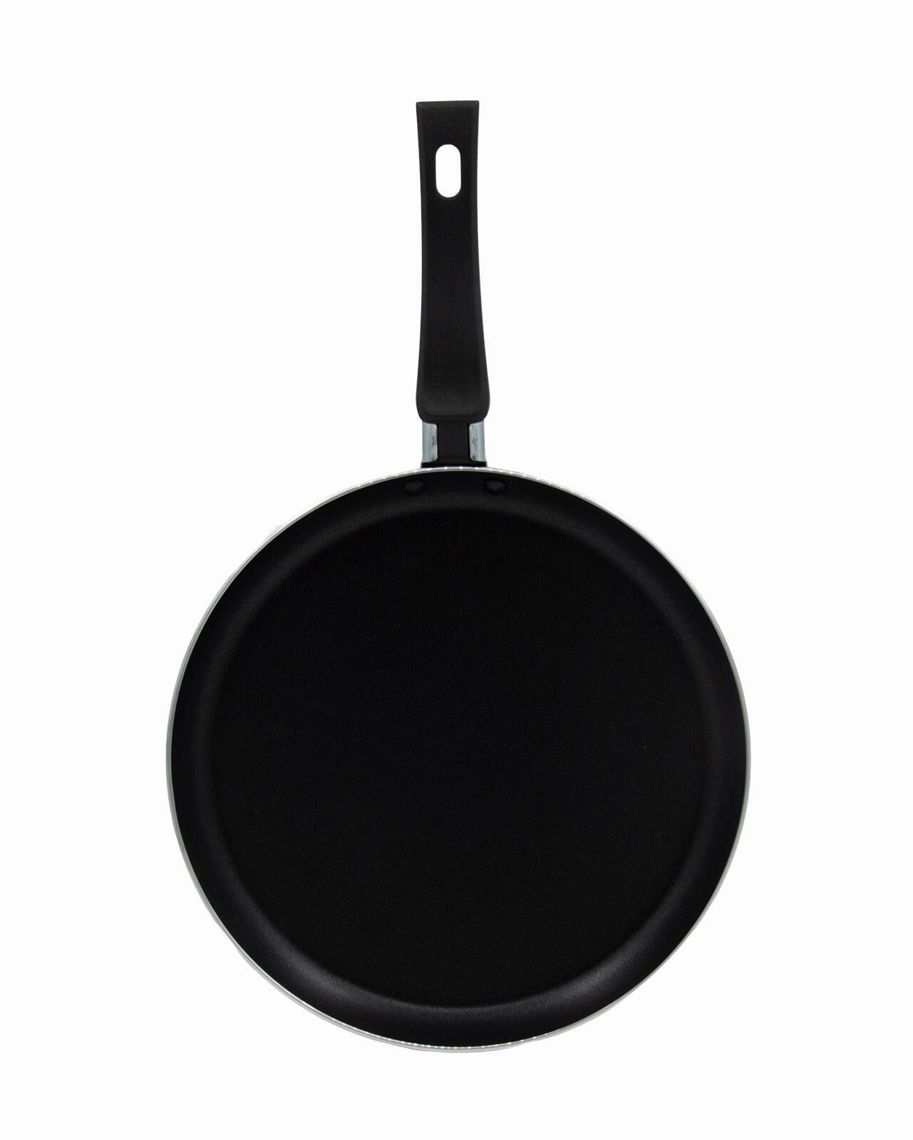 Il comfort durante la cottura è completato dal manico in bachelite resistente al calore con solido fissaggio rivettato per una presa sicura. La padella è adatta a gas, vetroceramica ed elettrico, non compatibile con l'induzione.