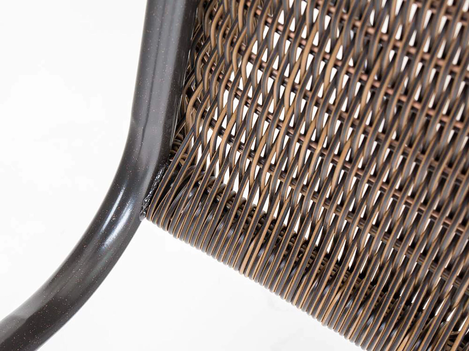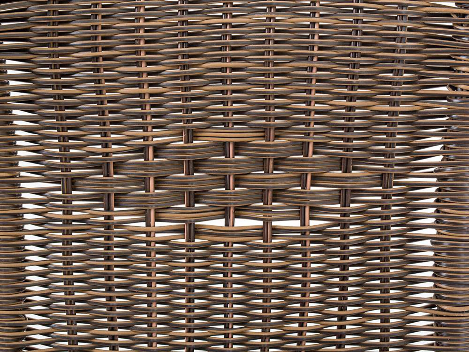 Il rattan sintetico in tonalità marrone è resistente all'umidità e facile da pulire, quindi ideale per l'uso esterno tutto l'anno.