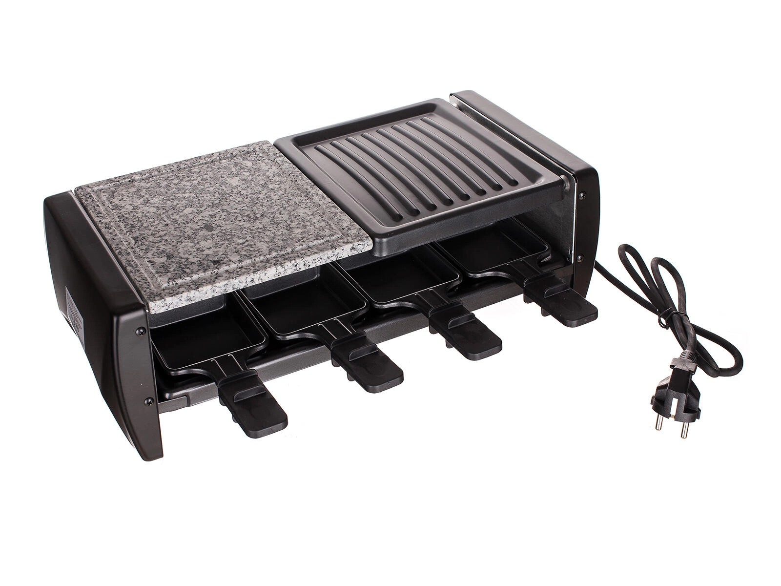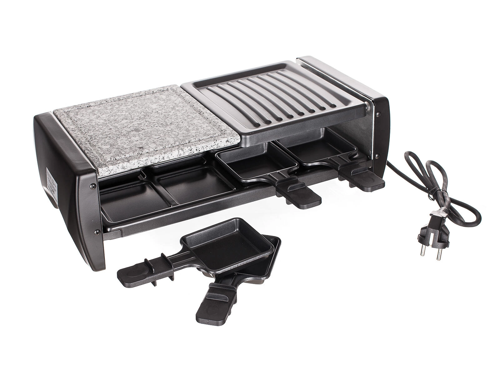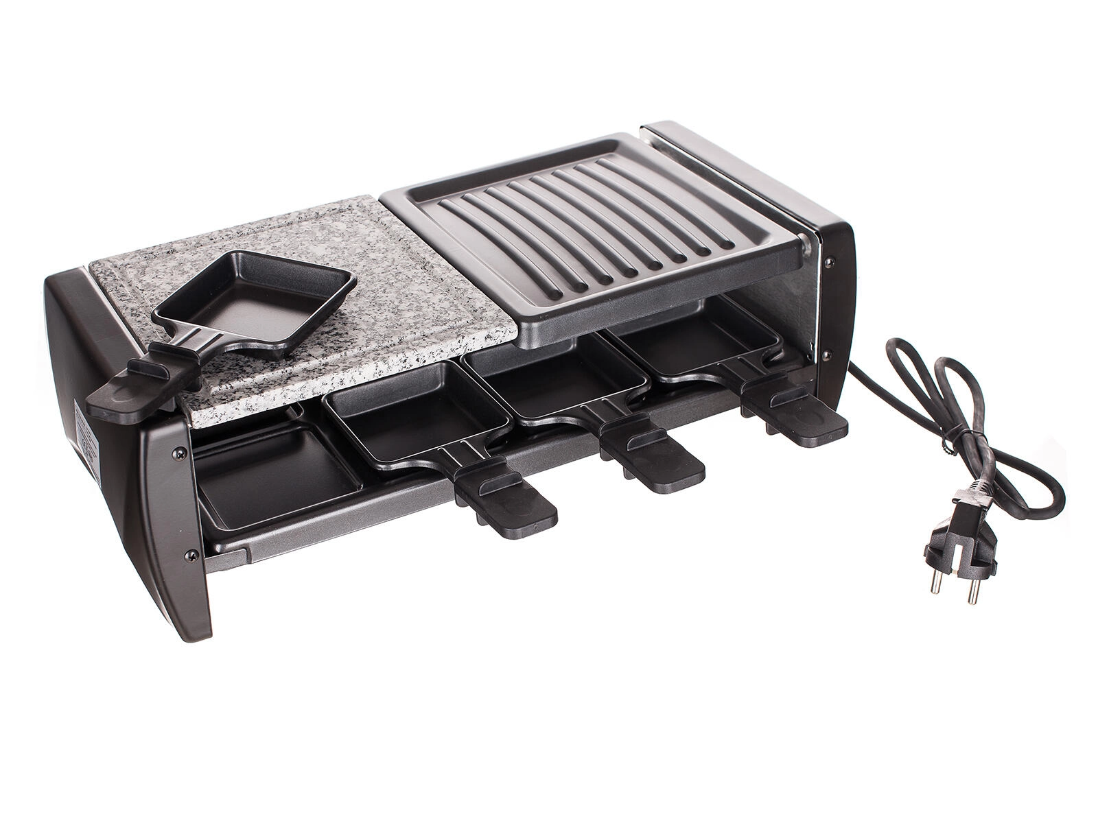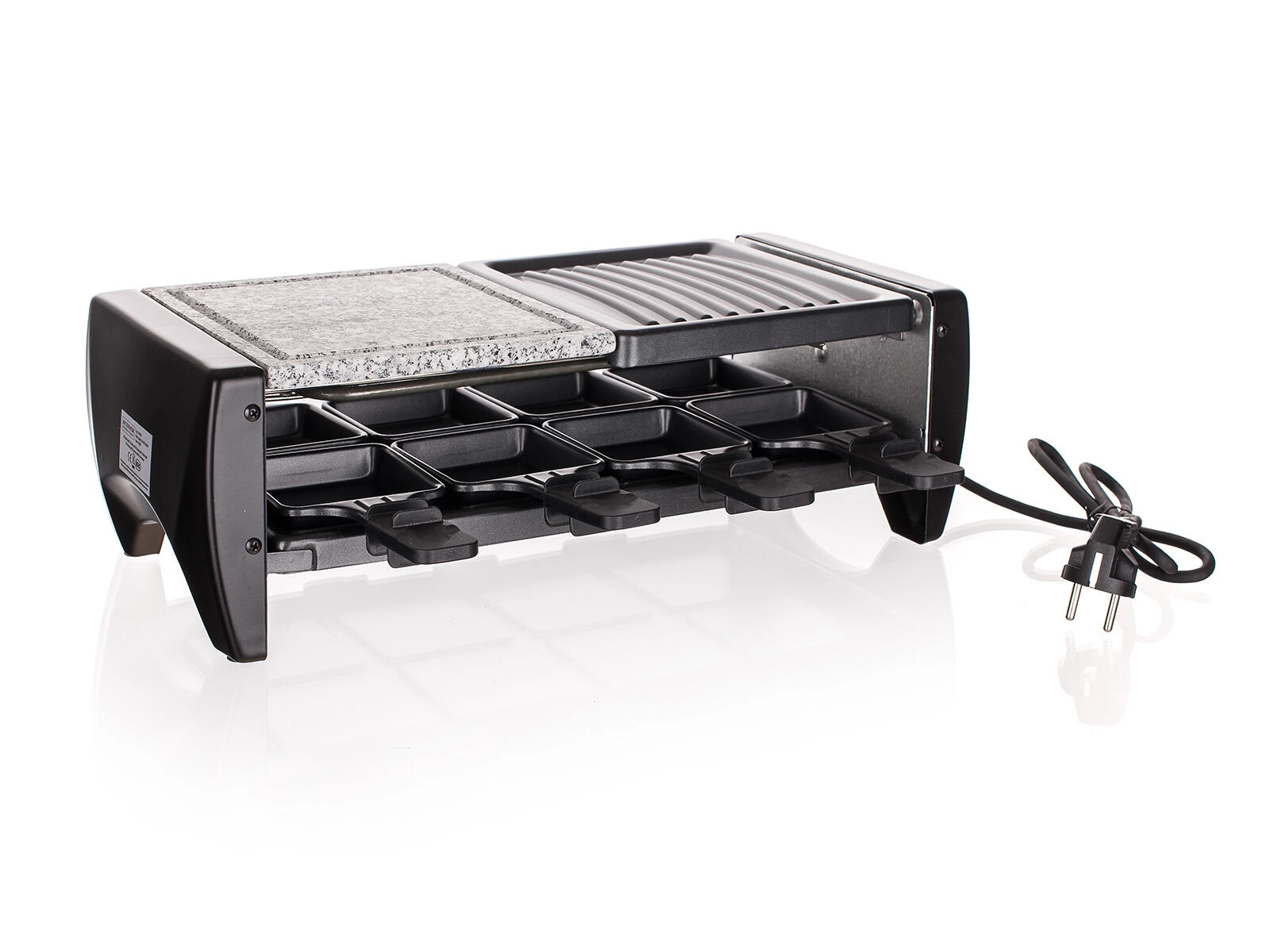 Otto padelline antiaderenti consentono a ciascuno di preparare la propria porzione – dal formaggio fuso a mini omelette o mix di verdure. La griglia è smontabile e, una volta raffreddata, si pulisce molto facilmente, risultando perfetta per l'uso quotidiano in casa e in balcone.