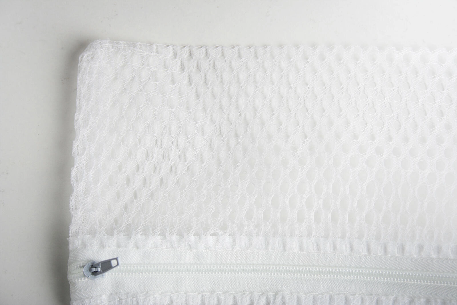 Il set comprende due sacchetti a rete bianchi nelle dimensioni 20 × 30 cm e 30 × 40 cm. La rete fine ma resistente lascia passare acqua e detersivo per un lavaggio efficace, proteggendo i tessuti da sfregamenti e impigliamenti. La chiusura con zip mantiene il contenuto saldamente all’interno per tutto il ciclo di lavaggio.