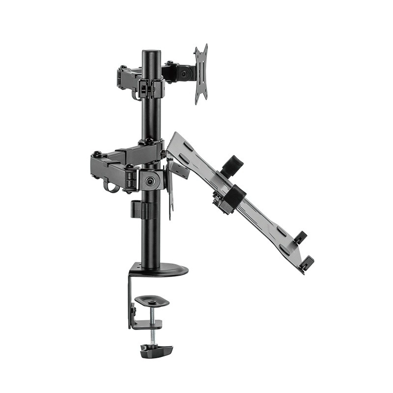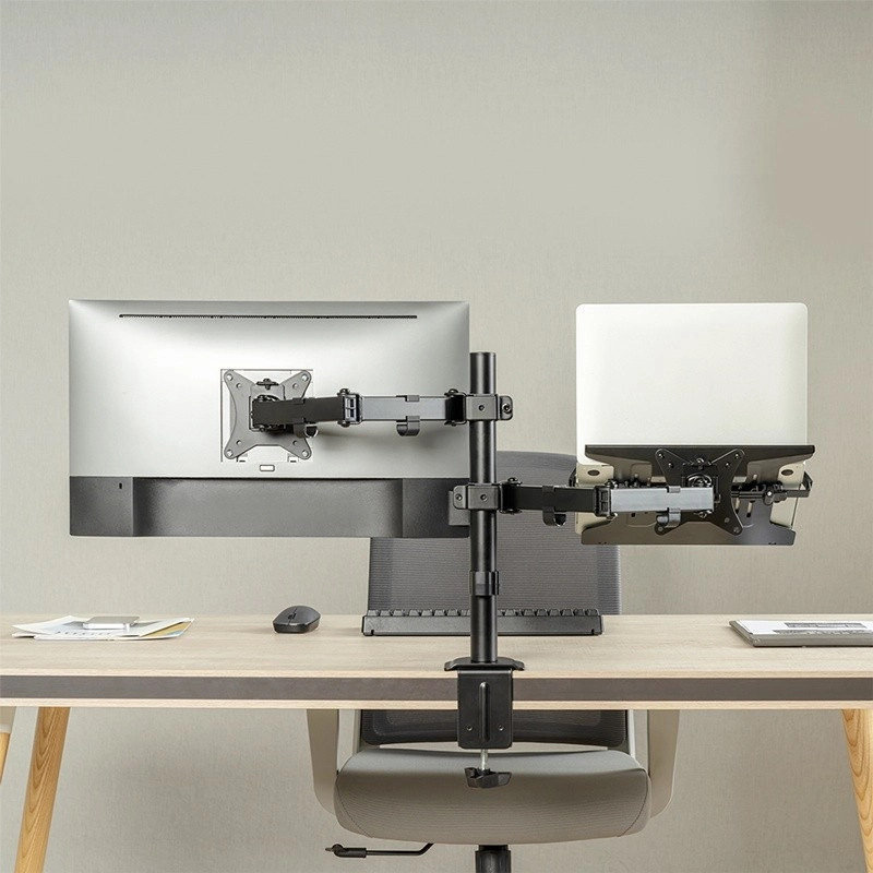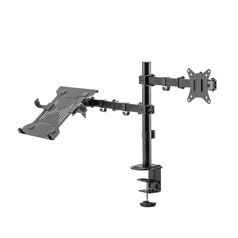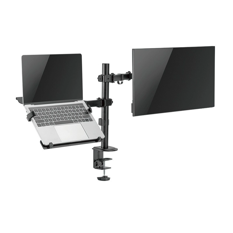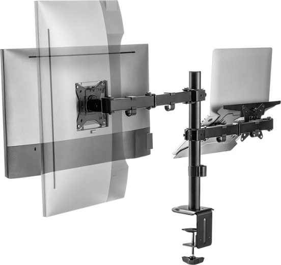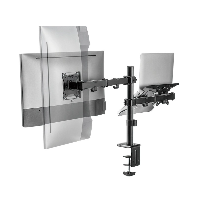 Aumenta la tua produttività con un supporto universale che sostiene contemporaneamente un monitor da 13–32" e un notebook o tablet. Grazie ai bracci completamente regolabili, alla struttura stabile e al fissaggio alla scrivania, crei facilmente una postazione ergonomica, liberi spazio sul piano e adatti con precisione la posizione dello schermo alle tue esigenze.