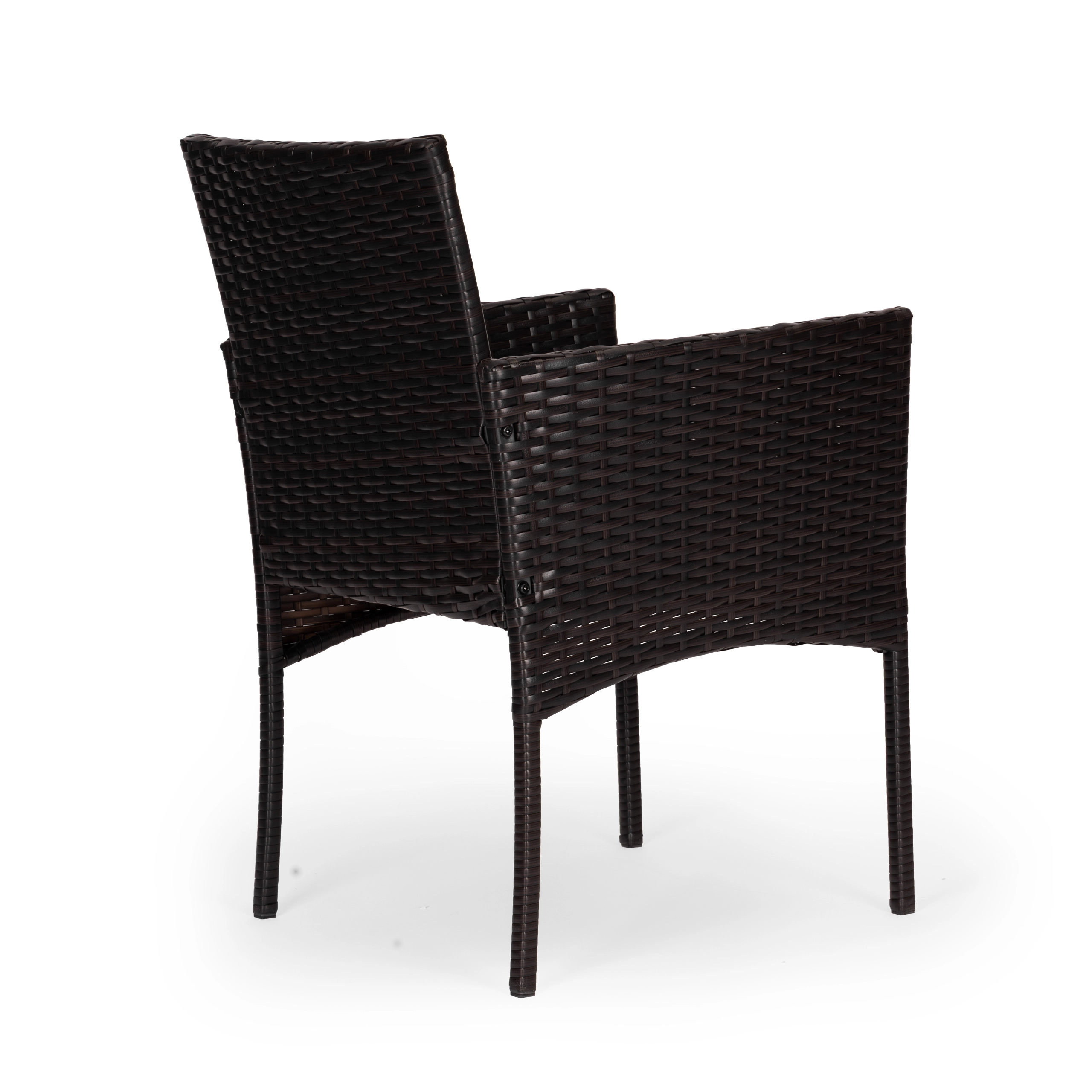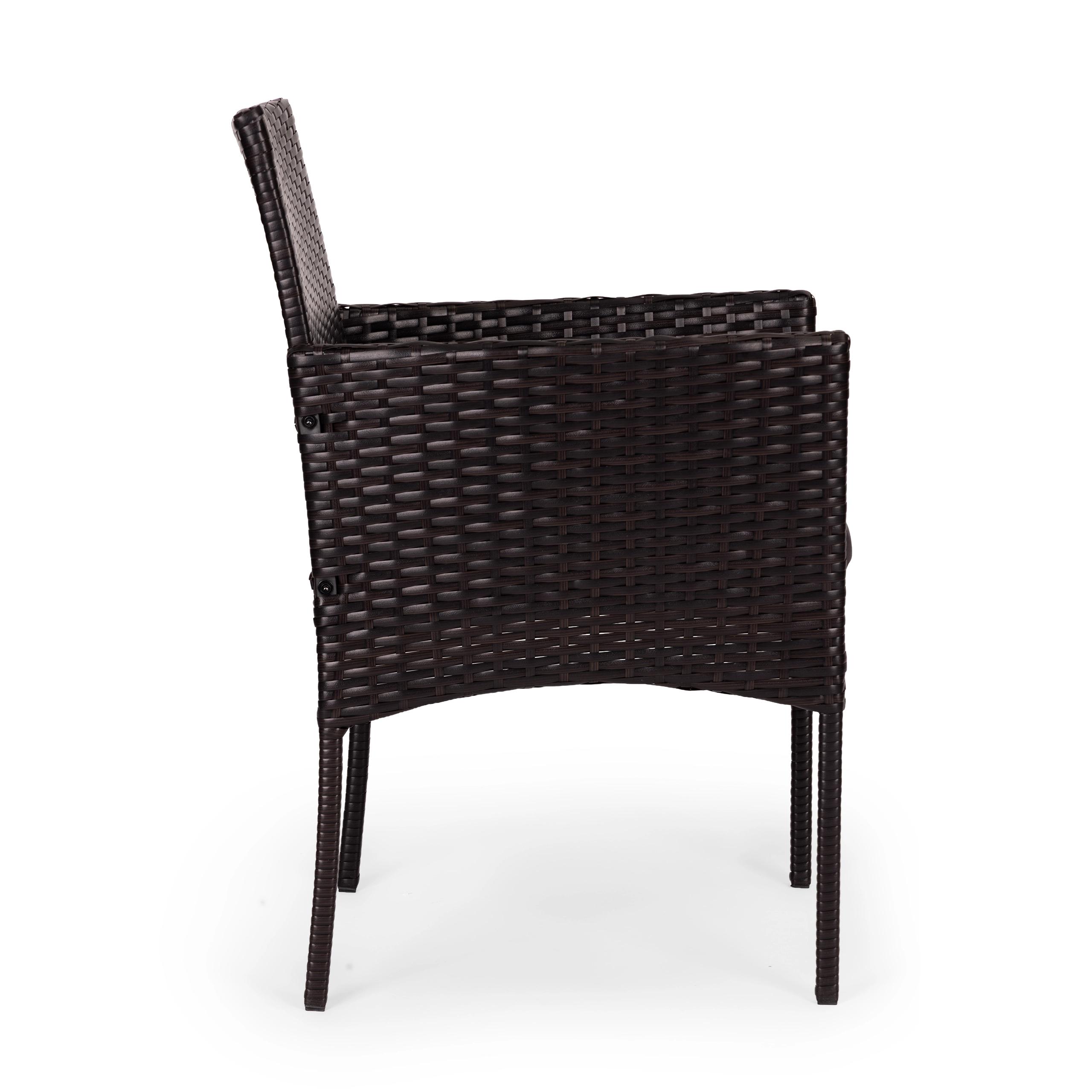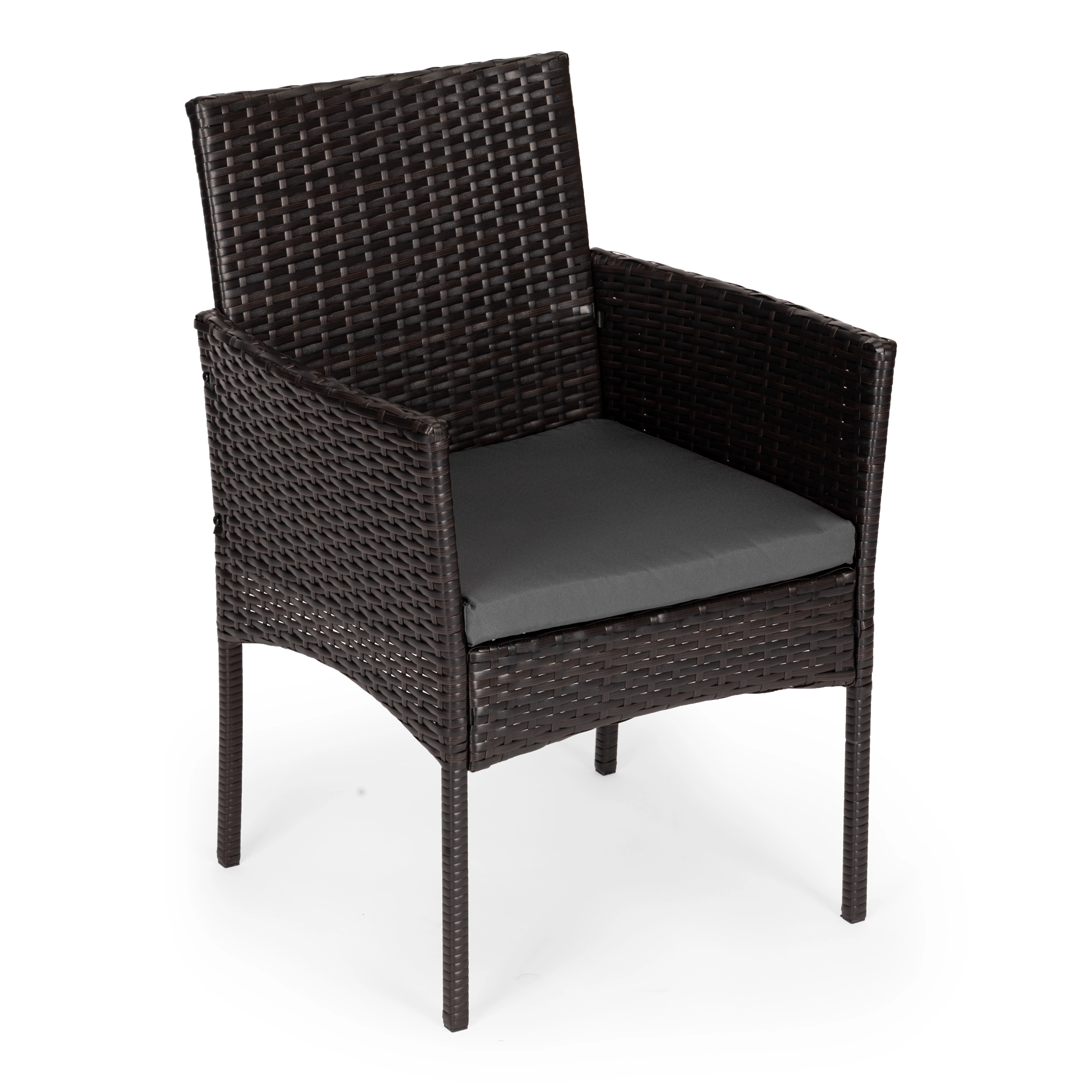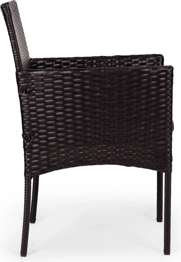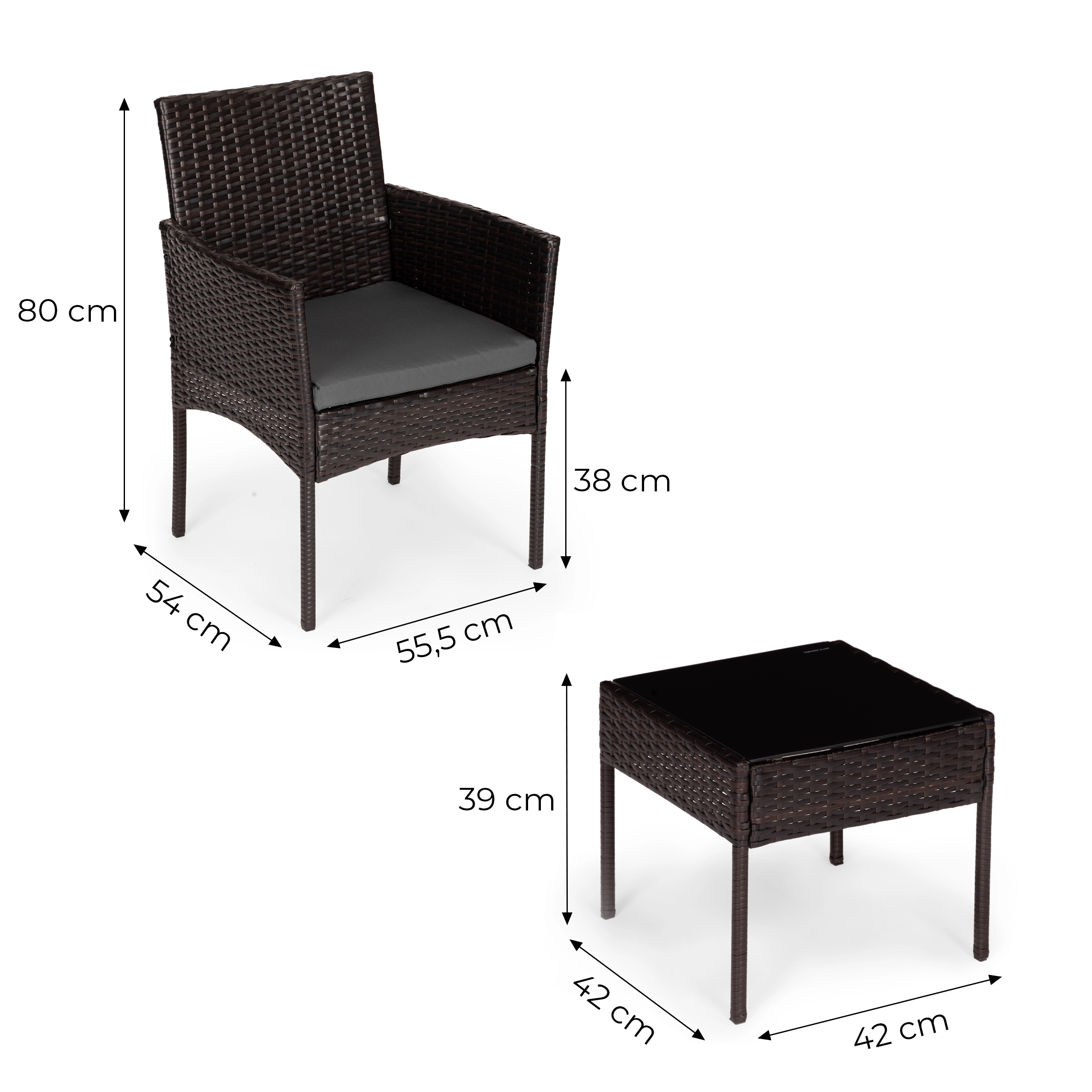 Crea un angolo relax confortevole per il caffè del mattino e le serate in compagnia. Il set include 2 comode poltrone con braccioli e un tavolino quadrato con piano in vetro temperato. La resistente combinazione di acciaio e tecnorattan assicura stabilità, lunga durata e facile pulizia.