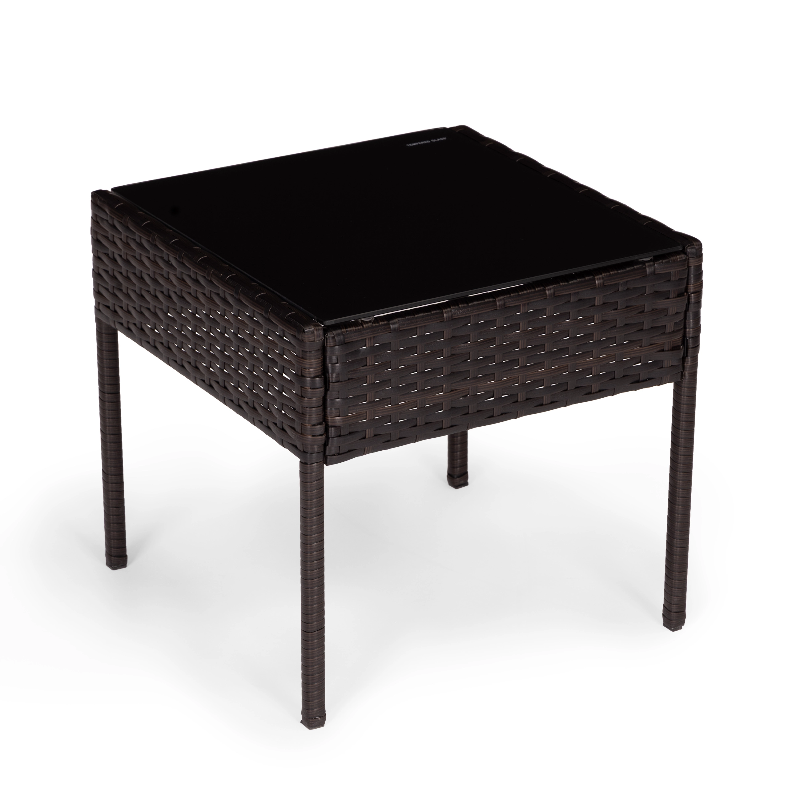 Il tavolino quadrato con piano in vetro temperato da 5 mm è resistente ai graffi, facile da pulire ed è ideale per bevande e piccoli oggetti.