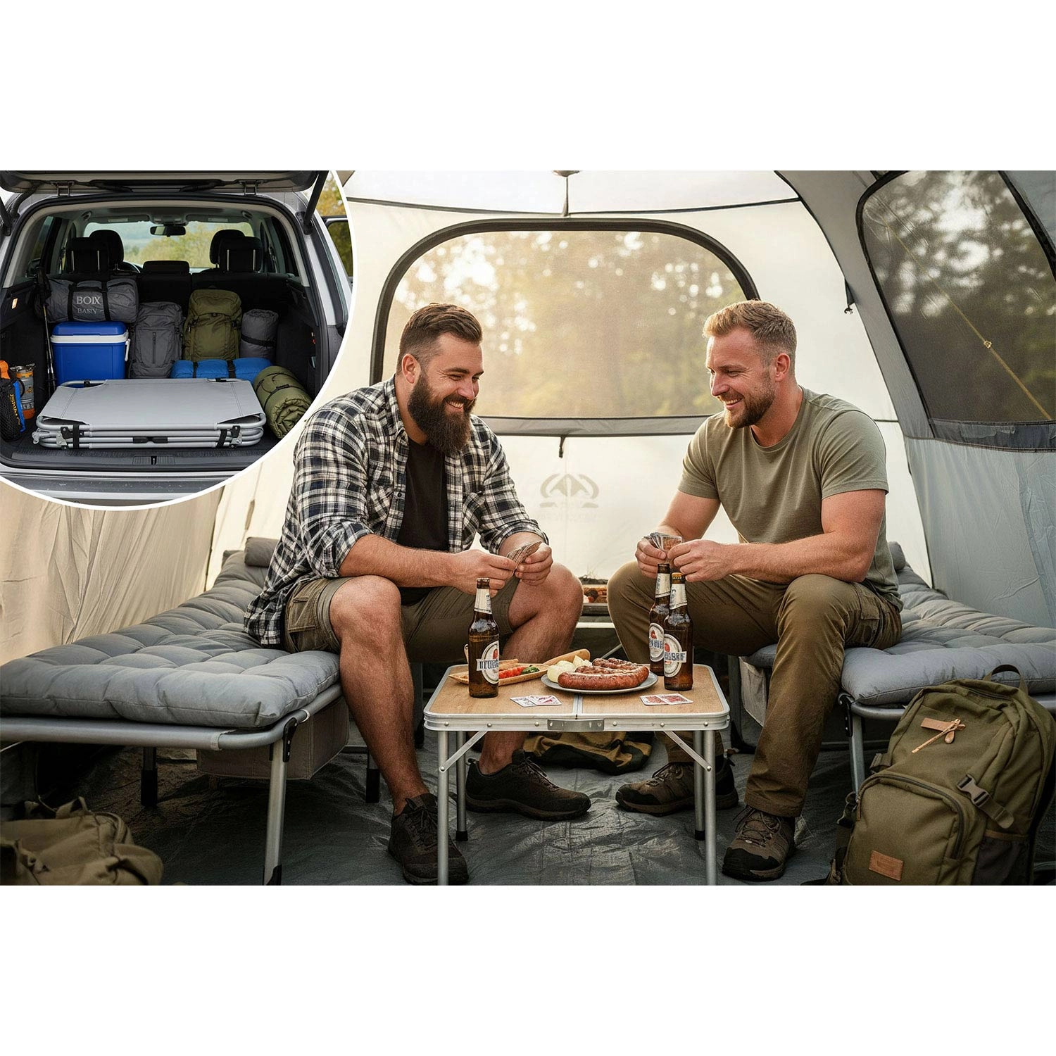 Perfetto per campeggio, giardino, terrazza, balcone, a bordo piscina e come soluzione rapida per ospitare la notte. Il colore grigio neutro si adatta a qualsiasi ambiente e completa con eleganza la tua area relax outdoor.