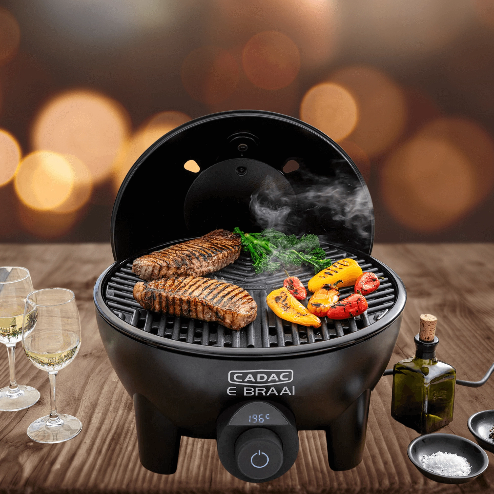 Scoprite la comodità e il gusto della grigliata elettrica con la compatta CADAC E‑Braai. La potente resistenza da 2,3 kW garantisce un rapido riscaldamento, mentre la regolazione automatica e precisa della temperatura misura direttamente sulla griglia e l’intervallo 70–270 °C è ideale dalla cottura lenta alla rosolatura intensa. La manutenzione è facile grazie alla vaschetta raccogli-grassi estraibile e lavabile in lavastoviglie e alla griglia in ceramica GreenGrill per una preparazione più salutare.