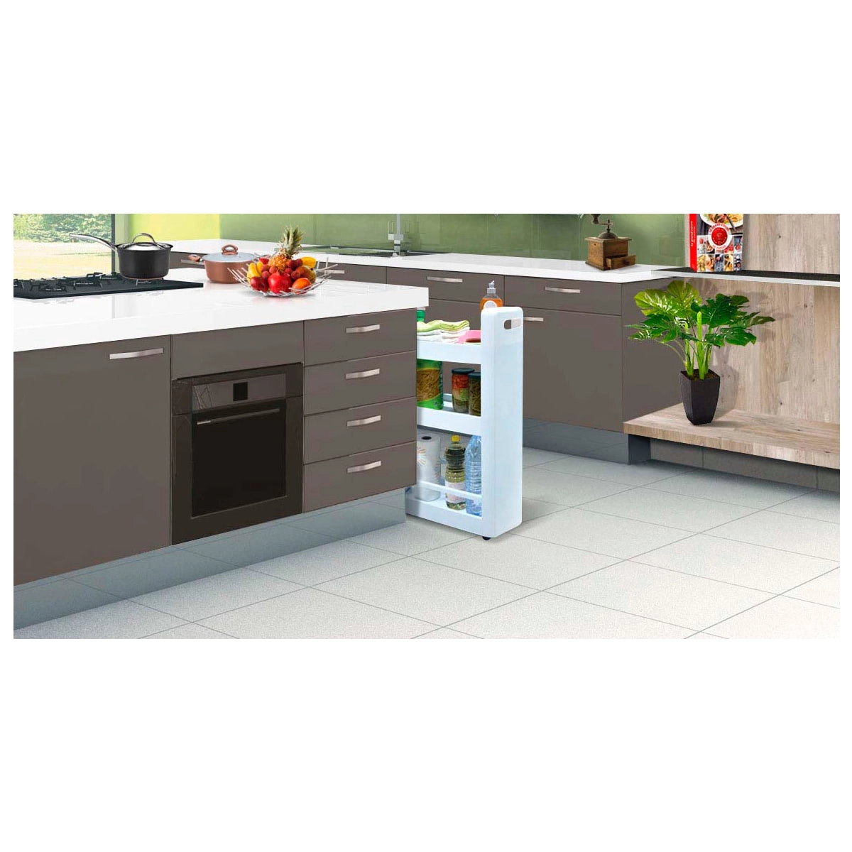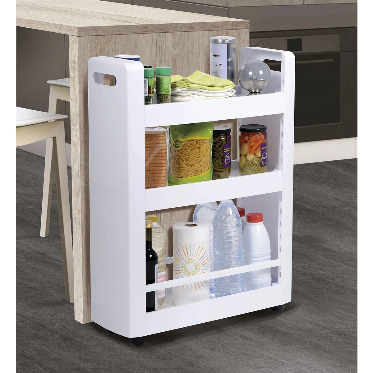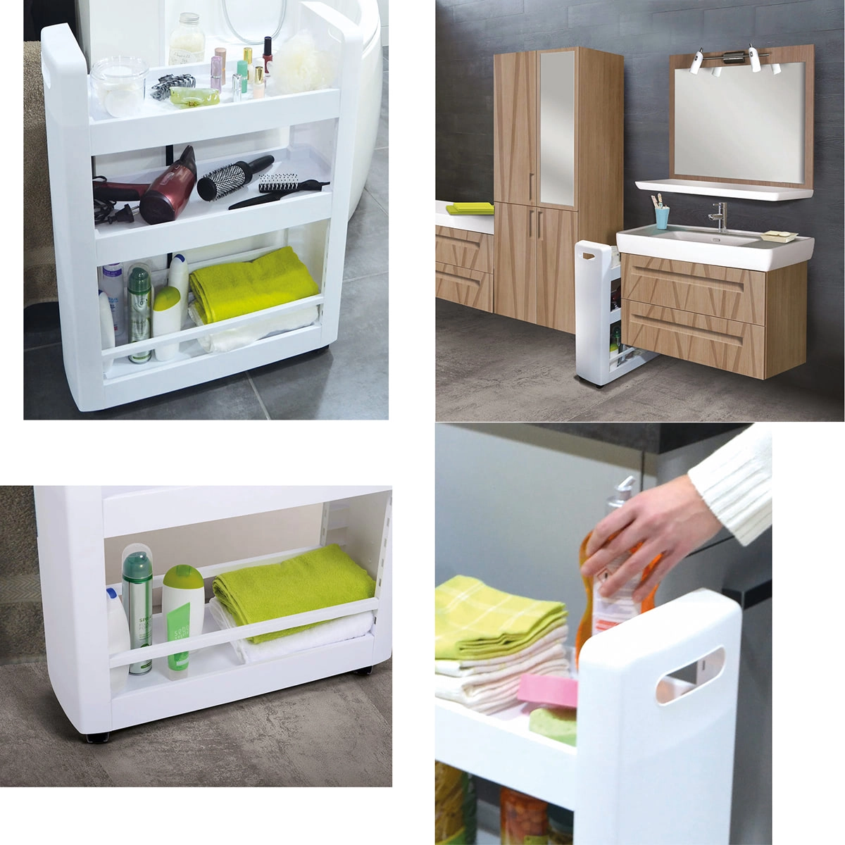 Pratico, stretto e multifunzione, questo scaffale mobile entra anche negli spazi più ridotti e crea subito spazio di archiviazione aggiuntivo. Grazie alle quattro ruote girevoli si estrae facilmente tra elettrodomestici o mobili, e i ripiani regolabili si adattano alle tue esigenze in cucina, bagno e lavanderia.