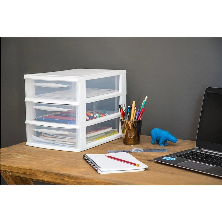 Questa cassettiera modulare con 3 cassetti stretti A4 è ideale per riporre appunti, cancelleria, forbici, graffette, cavi, chiavette USB o CD. La struttura impilabile consente di posizionare più unità una sull’altra o affiancate, creando così un sistema su misura per le tue esigenze. Grazie alle dimensioni compatte si adatta perfettamente sia allo scaffale sia alla scrivania.