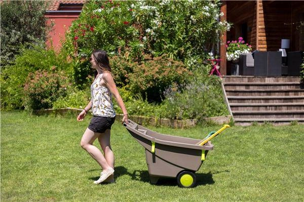 La pratica carriola da giardino con capacità di 140 l facilita i lavori quotidiani in giardino e intorno a casa. Grazie alla doppia ruota si manovra facilmente anche su superfici irregolari e morbide; la struttura leggera e resistente in polipropilene garantisce una lunga durata e la vasca ampia contiene terra, erba, foglie e legna.