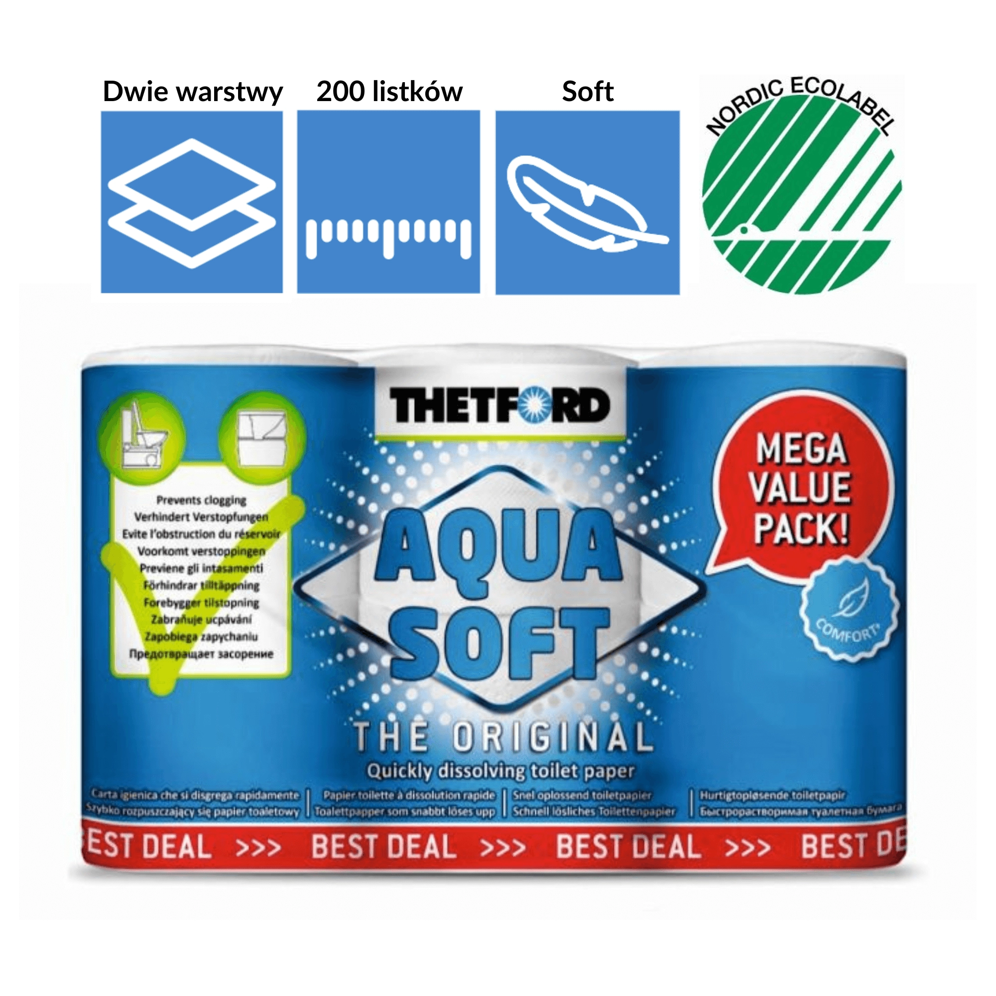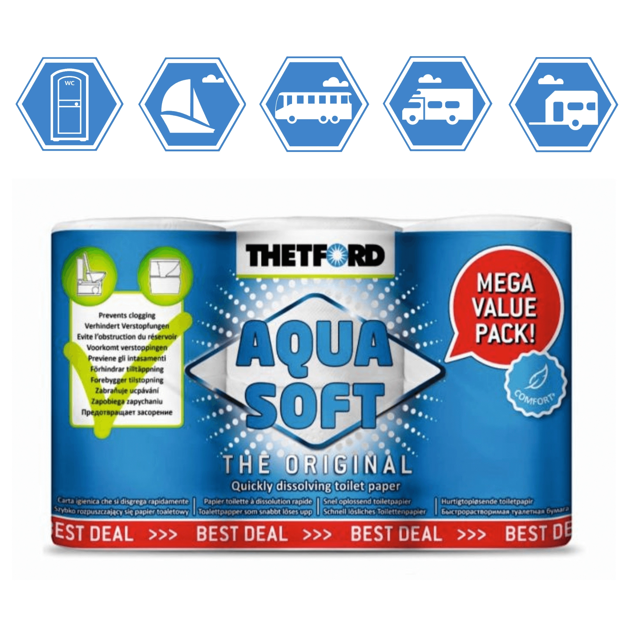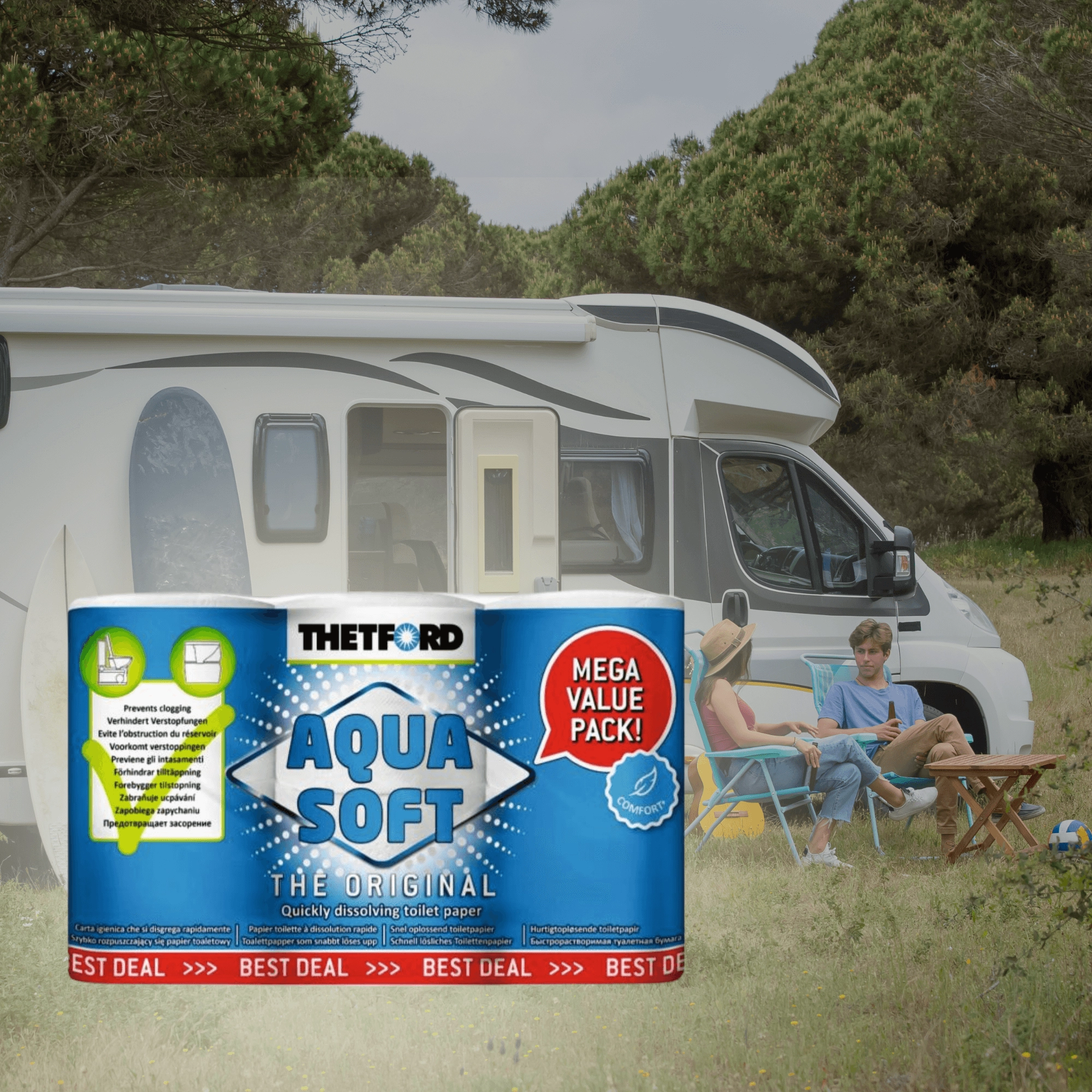 Goditi viaggi senza preoccupazioni con la carta igienica THETFORD Aqua Soft, sviluppata appositamente per WC chimici e portatili in camper, caravan, barche o case di villeggiatura. Grazie al rapido dissolvimento, evita la formazione di depositi, previene le ostruzioni e semplifica notevolmente la manutenzione e lo svuotamento del serbatoio.