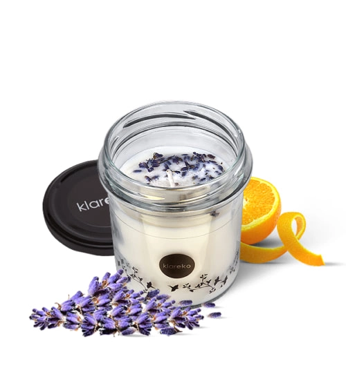 Goditi calma e armonia con la candela profumata naturale KLAREKO alla lavanda, realizzata a mano con cera di soia naturale e arricchita con oli essenziali. Offre fino a 22 ore di combustione, è ecologica, vegana e sicura per la salute e l’ambiente – senza fumo né tossine.