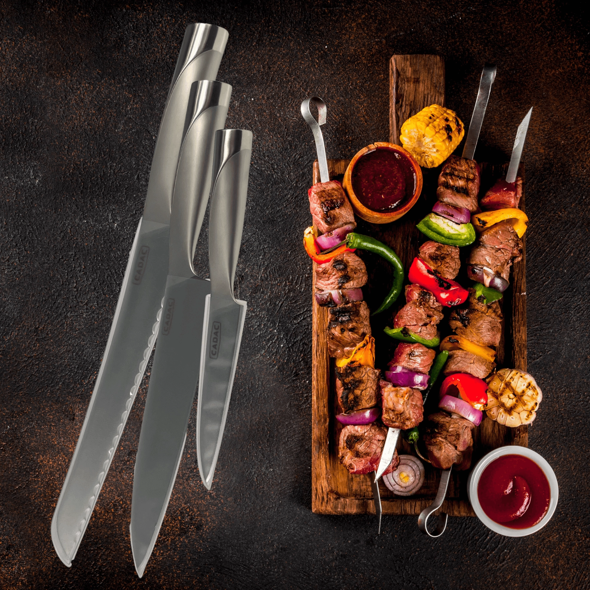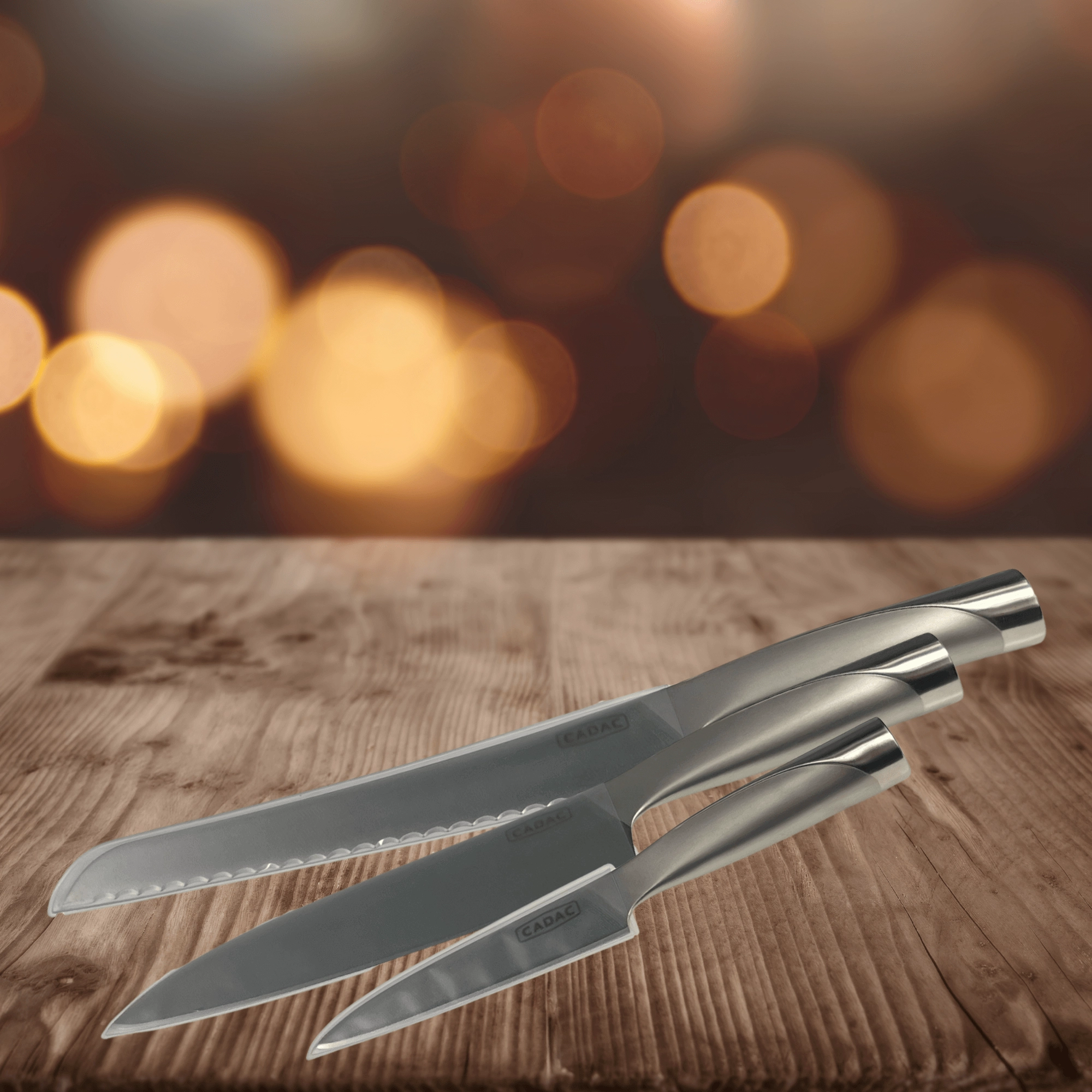 Scoprite l’affidabile set di coltelli CADAC che copre la maggior parte delle operazioni in cucina: dalla sbucciatura delicata e il taglio a dadini al porzionamento di ingredienti più grandi e al taglio comodo dei prodotti da forno. Il pregiato acciaio inossidabile assicura resistenza, fili affilati e facile manutenzione.