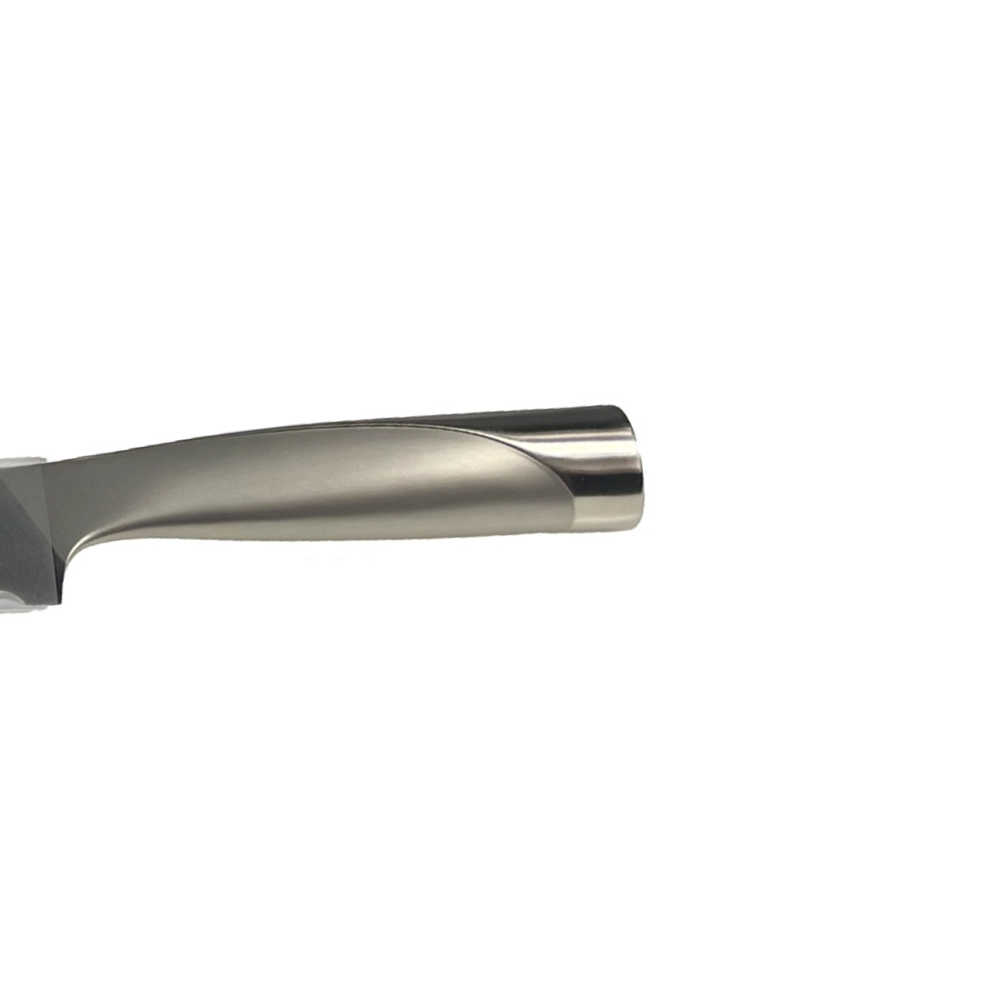 Il set include tre coltelli chiave: paring (12 cm) per lavori di precisione con frutta e verdura, coltello da chef (20 cm) come strumento universale per tagliare e tritare e coltello seghettato da pane (20 cm), che affronta sia la crosta croccante sia la mollica morbida.