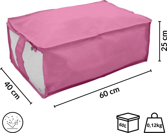 L’ampia apertura con zip facilita il riporre e l’estrazione anche di oggetti voluminosi, mantenendoli protetti dalla polvere.