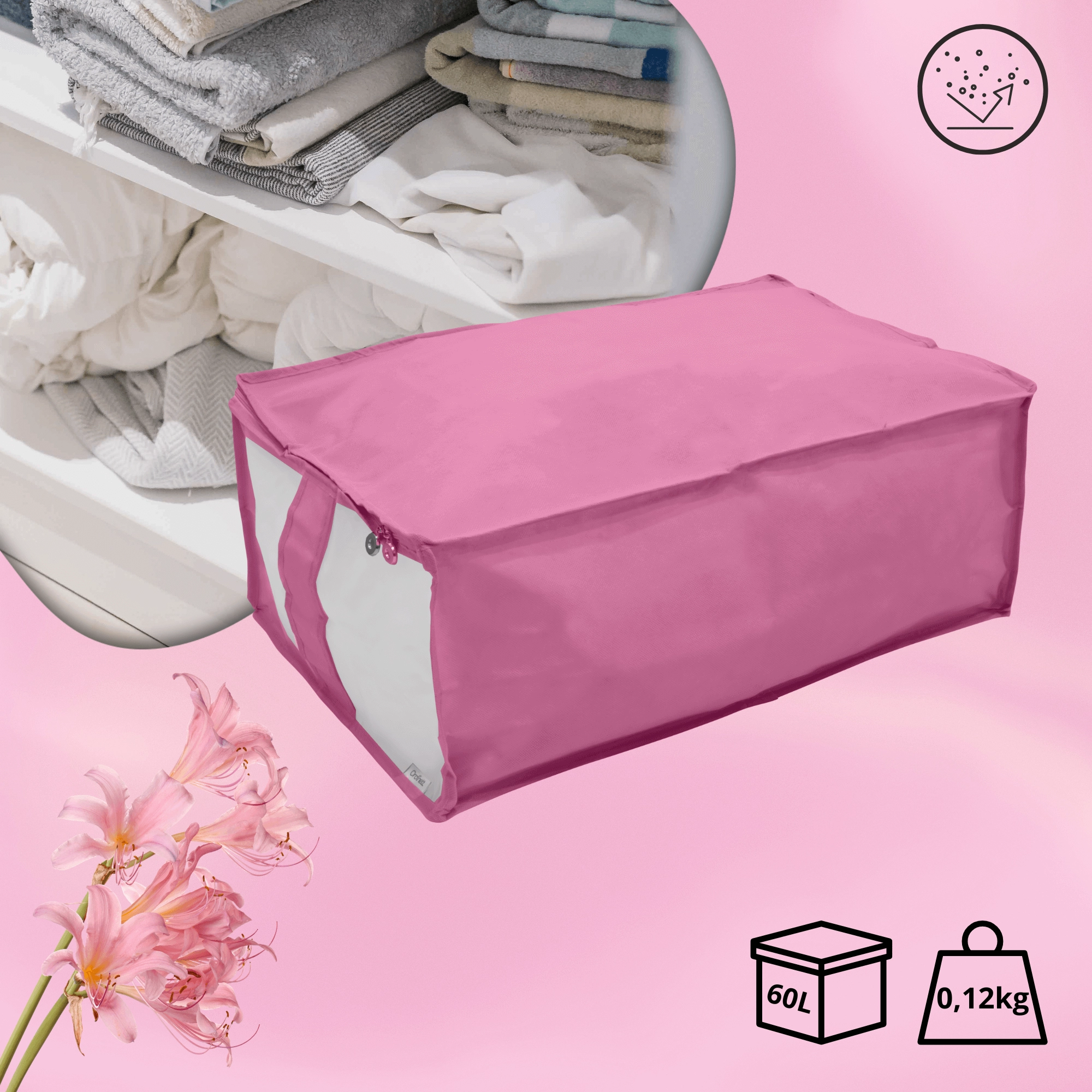 Metti ordine in armadio e camera da letto con il contenitore rosa KAMAI ORDINETT Blossom. Grazie al profilo basso si adatta perfettamente sotto il letto e protegge gli oggetti dalla polvere. La finestra trasparente consente un controllo immediato del contenuto senza aprire inutilmente.